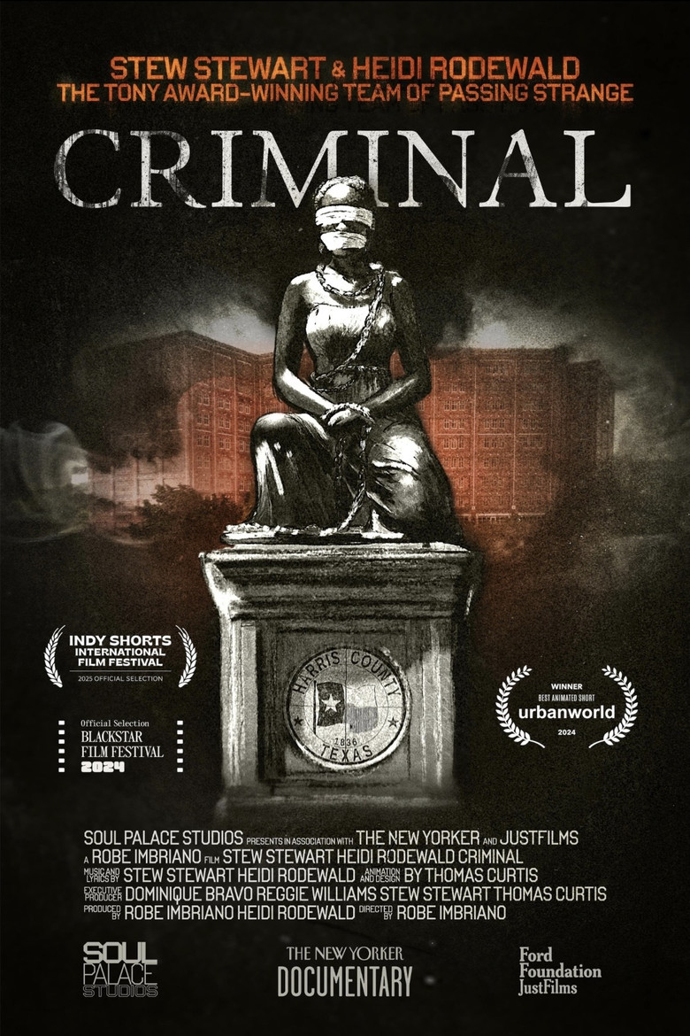 Criminal is an animated musical documentary short film that confronts the injustice of people held at the Harris County Jail in Houston, Texas. The vast majority are there because they don’t have enough cash to pay their way out before trial. Because they are poor, thousands are held for months or even shipped to jails out of state when they are supposed to be presumed innocent.