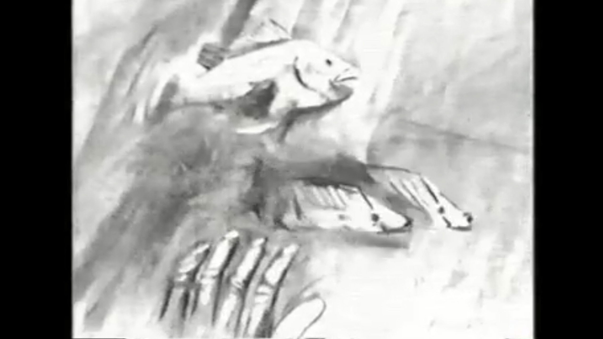 A charcoal animation of the meeting of a woman and a man.