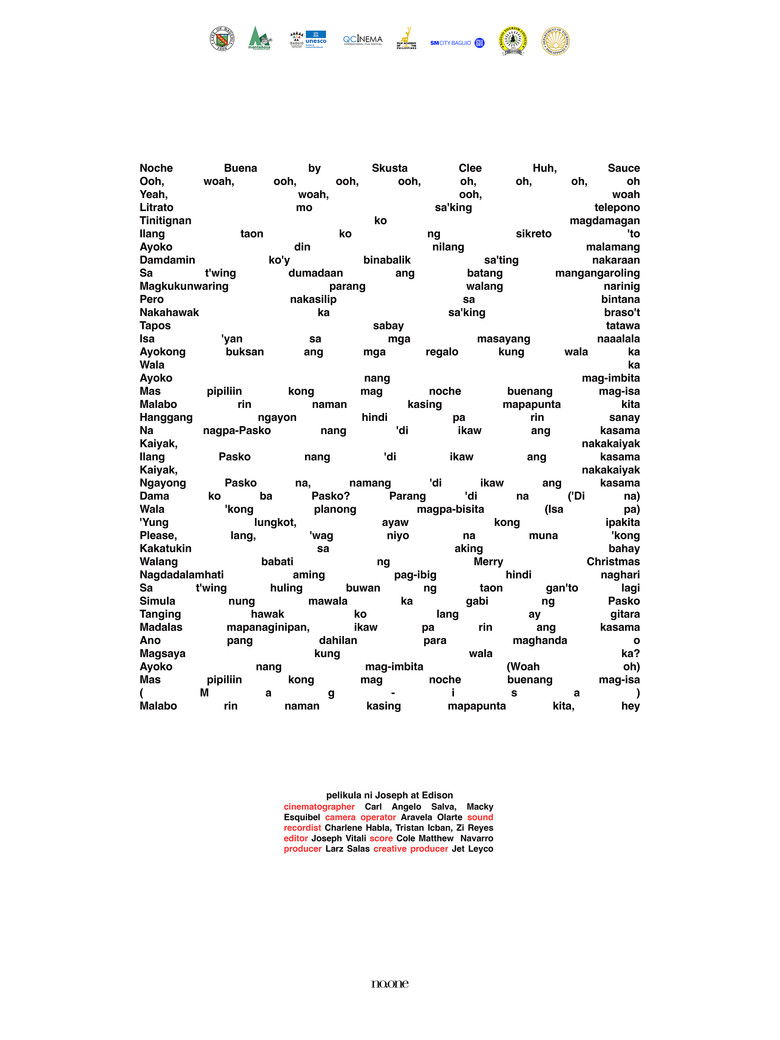 Edison, a street vendor in Manila, must sell all his remaining sherbet products before he can go home and celebrate Christmas. When his usual stall has no customers, he must find a way to look for buyers, chasing the chance to finally rest. Set against the holiday cheer, this documentary portrays the humanized persona of a young adult working hard to earn his right to celebrate.