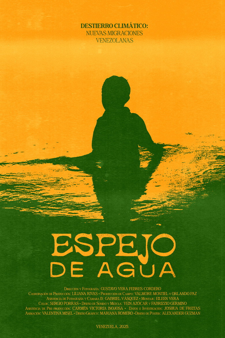 Espejo de Agua is a non-fiction short film set in Venezuela 's Sinamaica Lagoon, Zulia, where the Añú people are silently displaced due to climate change. Community leader Laura and the inhabitants of the lagoon, inside and outside their homeland, cling to the hope that it is not too late for changes and preserve their ancestral culture.