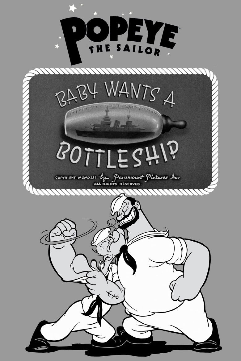Olive is going shopping and drops Swee'pea off for Popeye to watch. Popeye carves a sailboat for him, but the tyke spots Popeye's battleship, and the puny toy boat will no longer do.