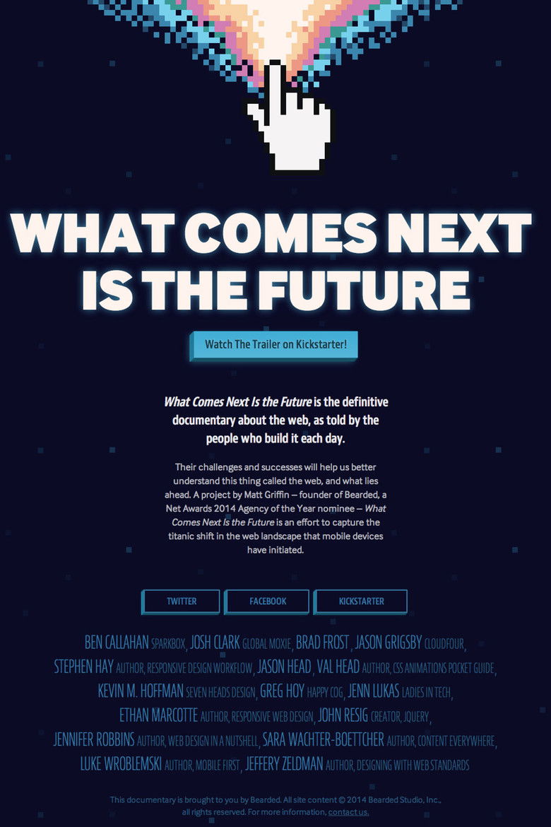 What Comes Next Is the Future is a documentary film about the web created by Bearded founder Matt Griffin. It is the story of Tim Berners-Lee’s creation – how it came to be, where it’s been, and where it’s going – as told by the people who build it.