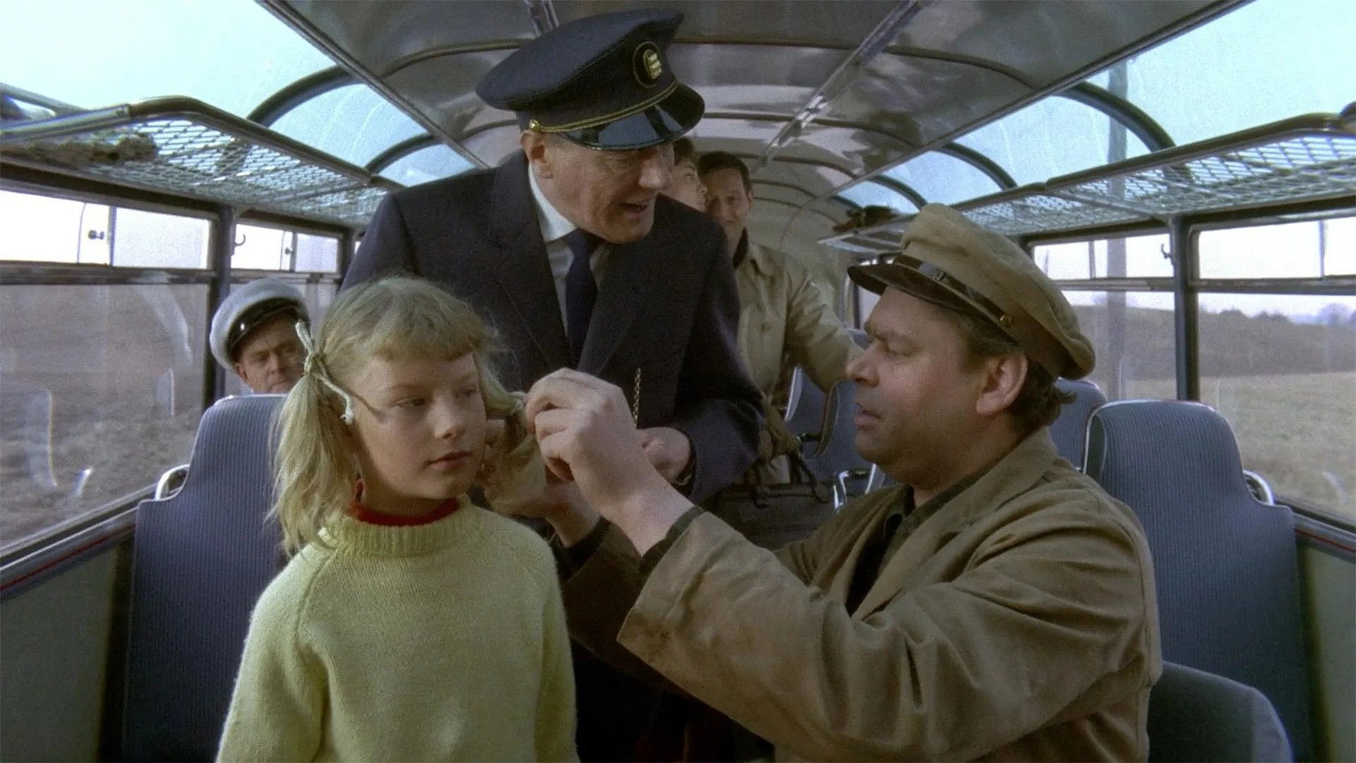 The protagonist is a jovial bus driver, well beloved by his passengers, essentially the whole community around him. The bus, however, is old, and needs to be replaced. The bus driver himself is also needed as a handyman for all the people around him, assisting with stray cattle, household machines, children's homework, errands of all kinds, and at one occasion, assisting birth. Progress is however leaving him behind, and the local county council plots on a solution, involving a new bus and driver. The community revolts, and the local midwife (married to the mayor) intervenes with all the locals to keep the bus driver, who ends up keeping his job in a new bus.
