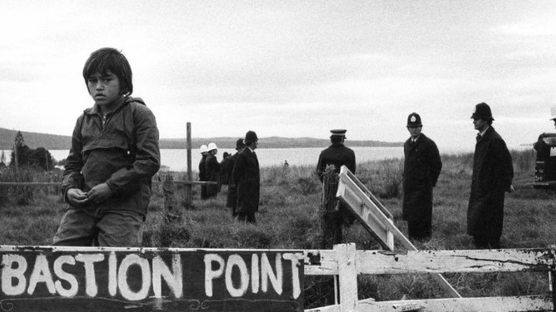 Merata Mita, Leon Narbey and Gerd Pohlmann’s powerful documentary Bastion Point: Day 507 depicts the eviction of protestors from Bastion Point during the struggle for Māori land rights.