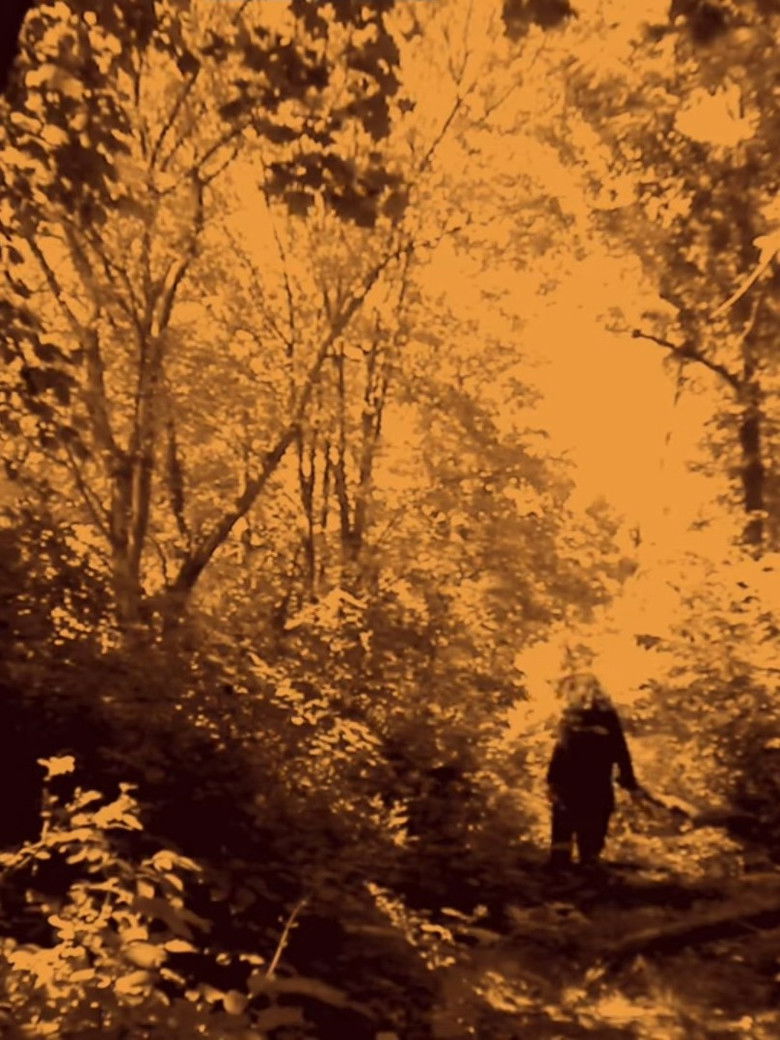 Deep in the backwoods, a man roams around in confusion with a woman's dead face stapled to his own.