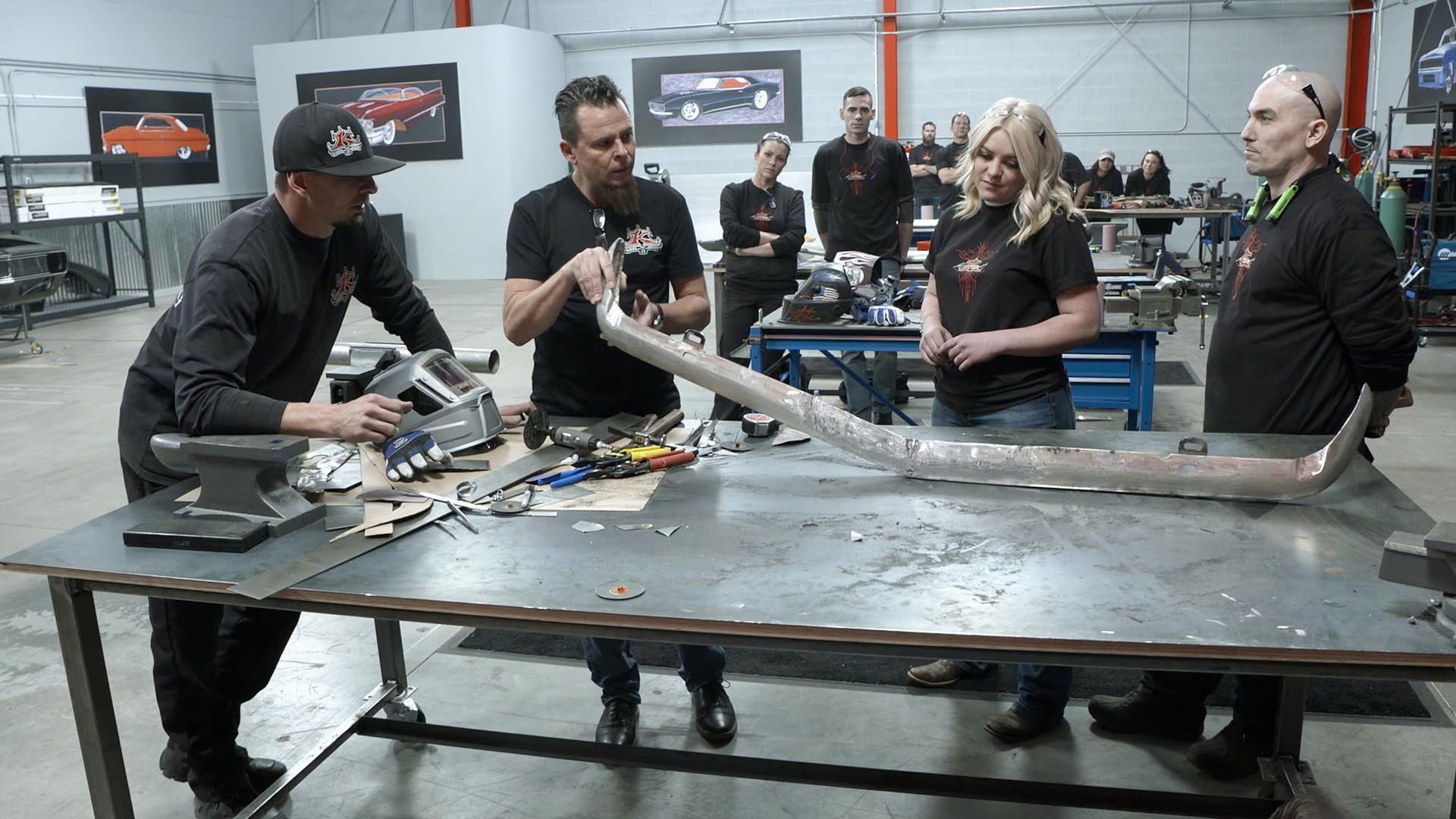 Dave and KevDogg keep the pressure on, as the remaining competitors pair up for a challenge to create a signature Kindig-It build feature. Teamwork is critical, and the team that can't figure it out will pack their bags.