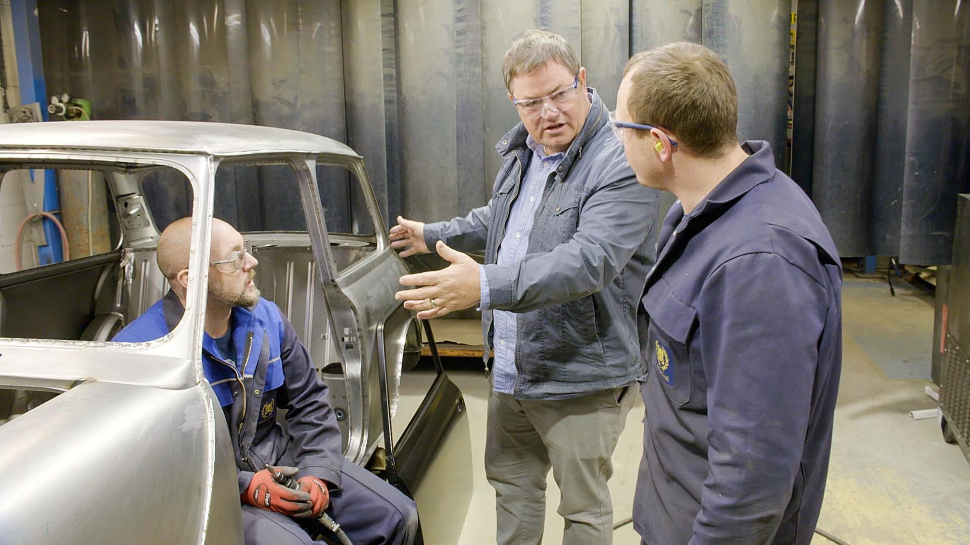 Mike ponders whether an old car loses its soul if the engine or body is replaced. He returns to England to visit British Motor Heritage, a company that produces genuine components for classic British cars like Minis and MGs.