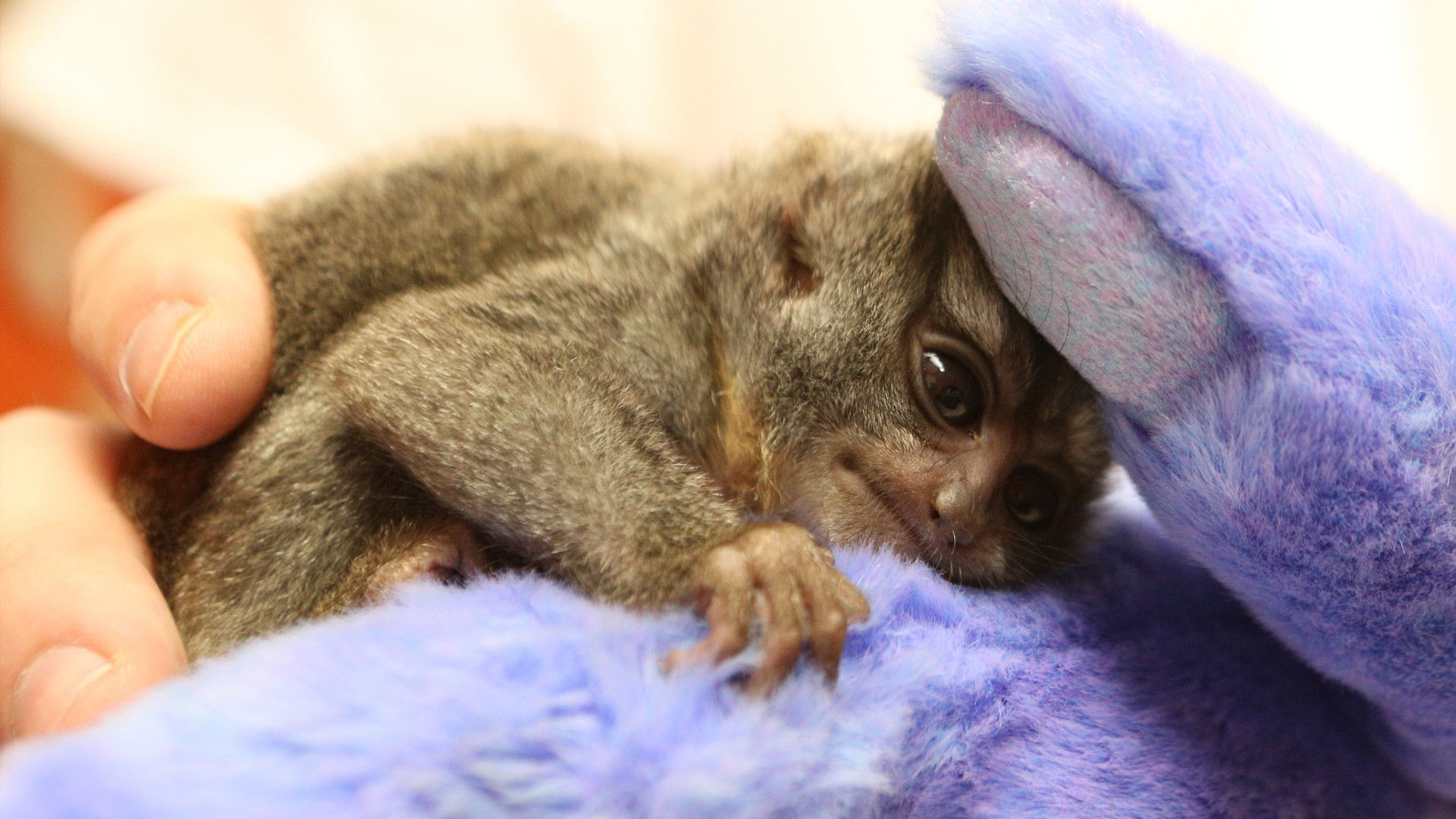 A newborn owl monkey comes in for a finger exam; an opossum needs her glands examined; and a coyote is at the clinic for a wellness exam.