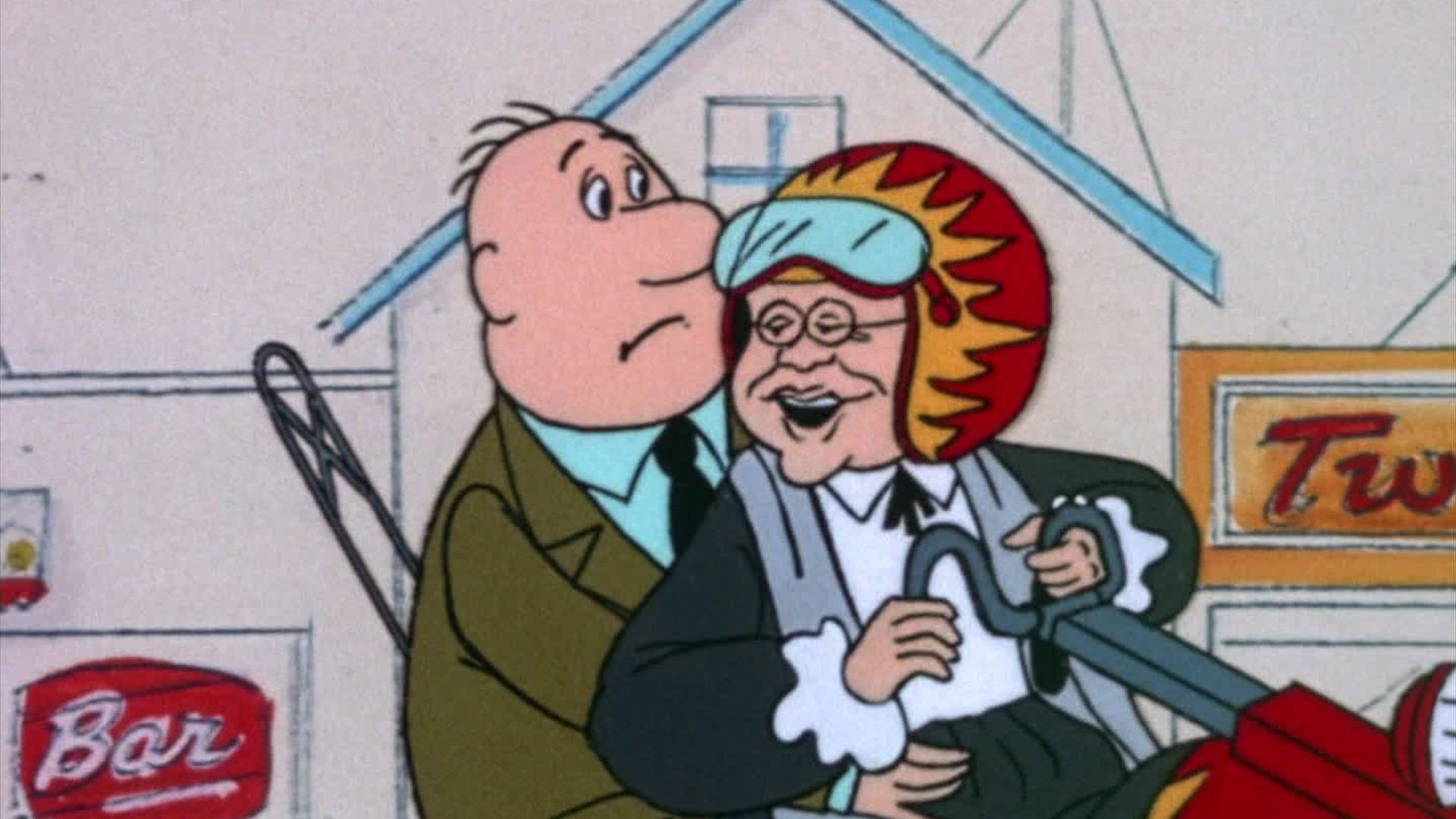 While collecting back payment, Harry helps an old woman open a service station for motorcycles.