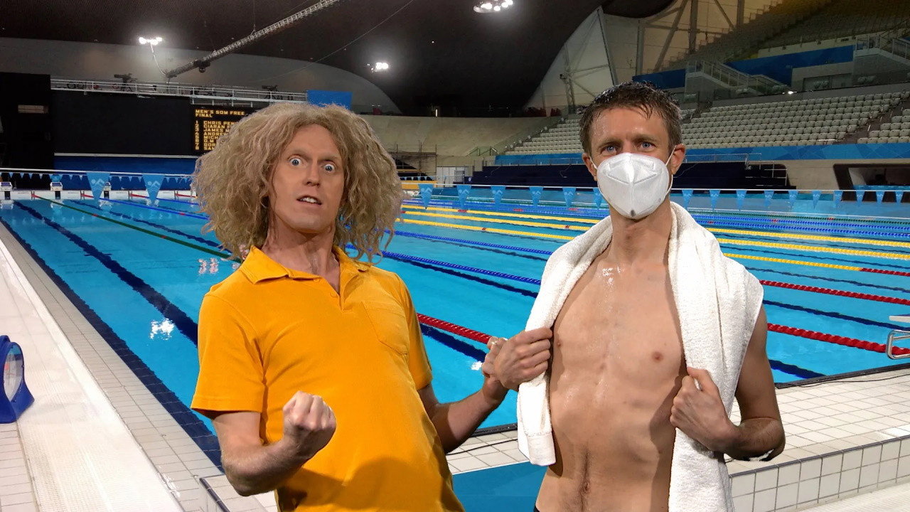 One happy Olympian slowly goes for gold.