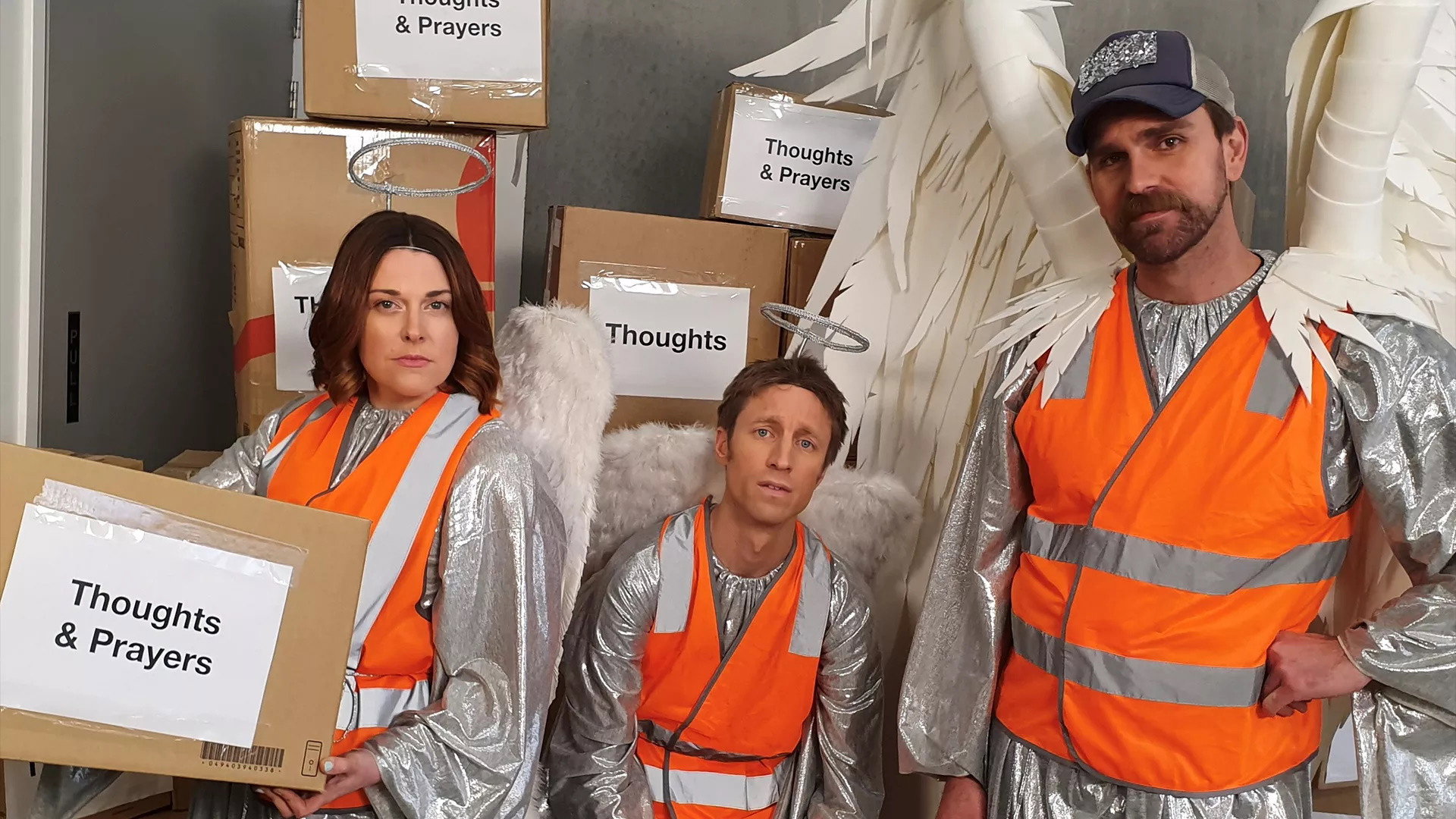 Flashback to 2019, where the angels are hard at work in heaven's Thoughts and Prayers department.