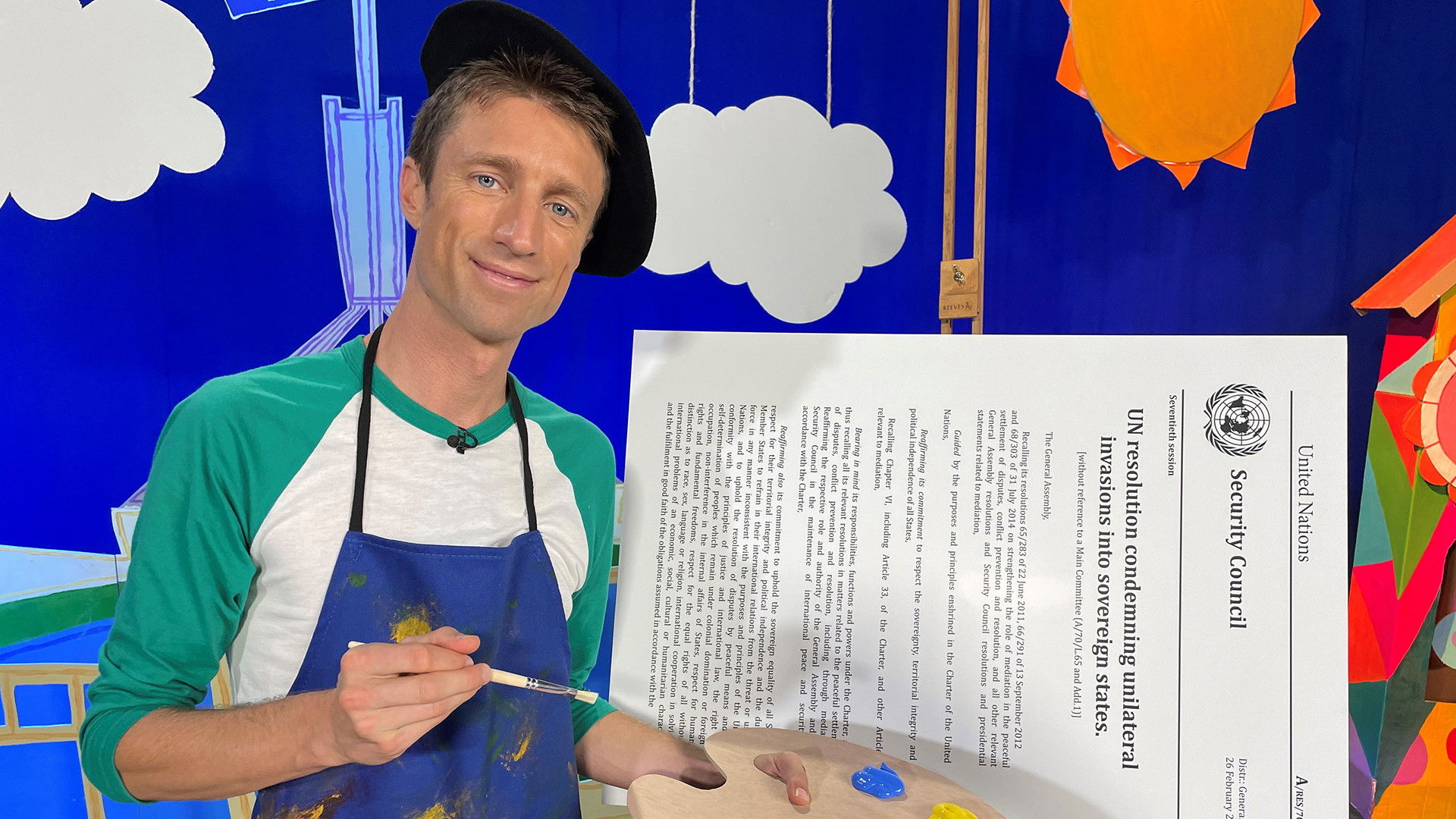 We're doing a painting today. Remember to stay within the lines!