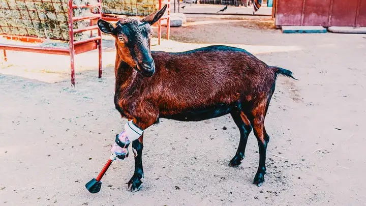 Derrick visits Aimee's Animal Sanctuary to help two disabled goats, Scooter, born paralyzed and Bella, missing a leg; with help from Amy and volunteer Collette, he hopes to get them out playing and grazing with the herd, finally free to roam together.