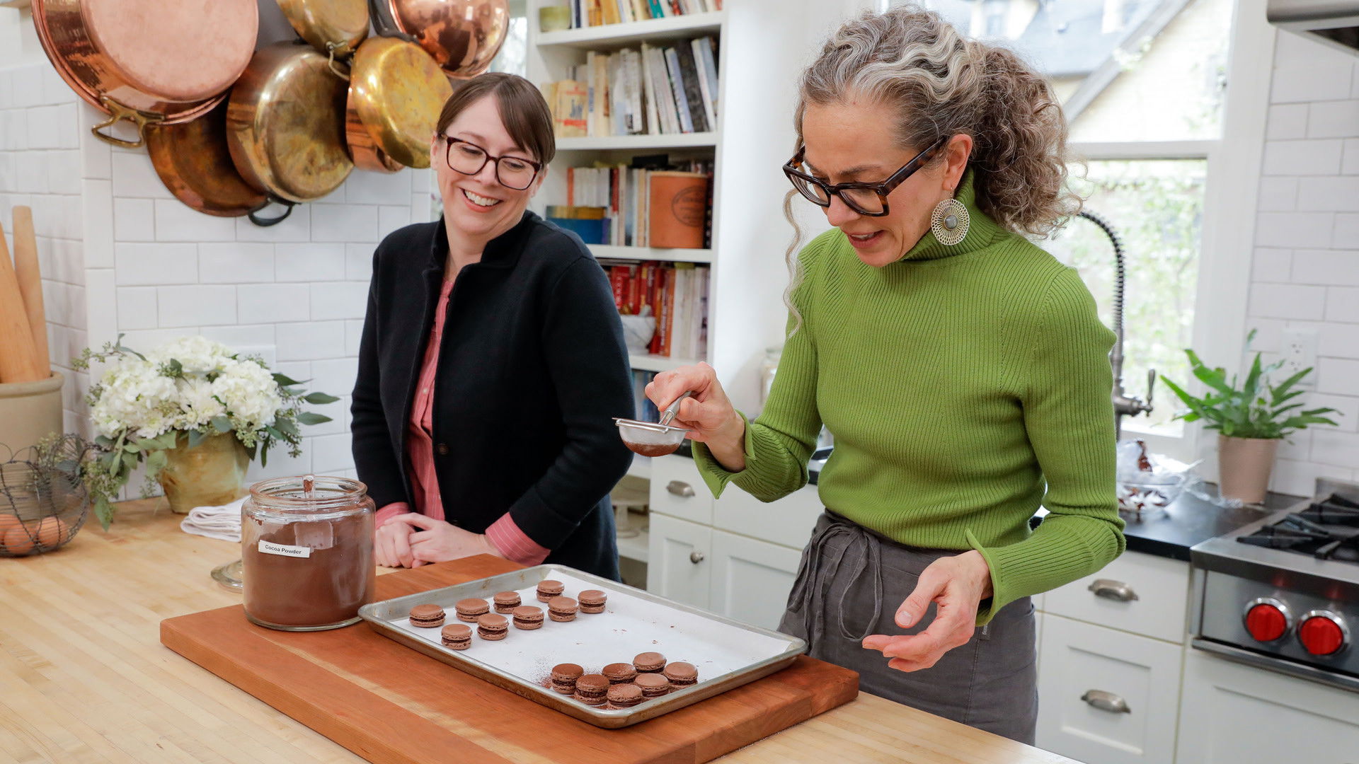 Zoë prepares chocolate macarons and coconut macaroons for a gathering.