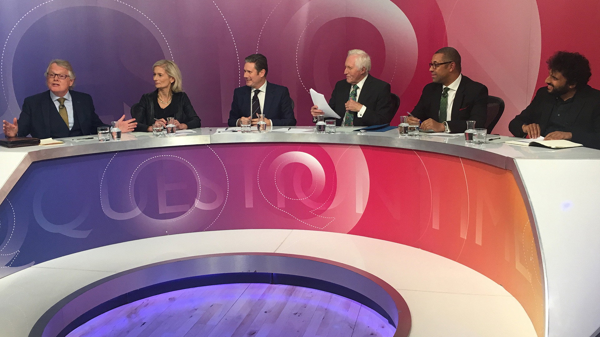 David Dimbleby chairs the debate from Guildford. On the panel are: James Cleverly MP, deputy chairman of the Conservative Party; Sir Keir Starmer MP, shadow Brexit secretary; Nish Kumar, comedian, television presenter and satirist; Michael Dobbs, former adviser to Margaret Thatcher, Tory peer and author of House of Cards; and Zanny Minton Beddoes, editor of The Economist.