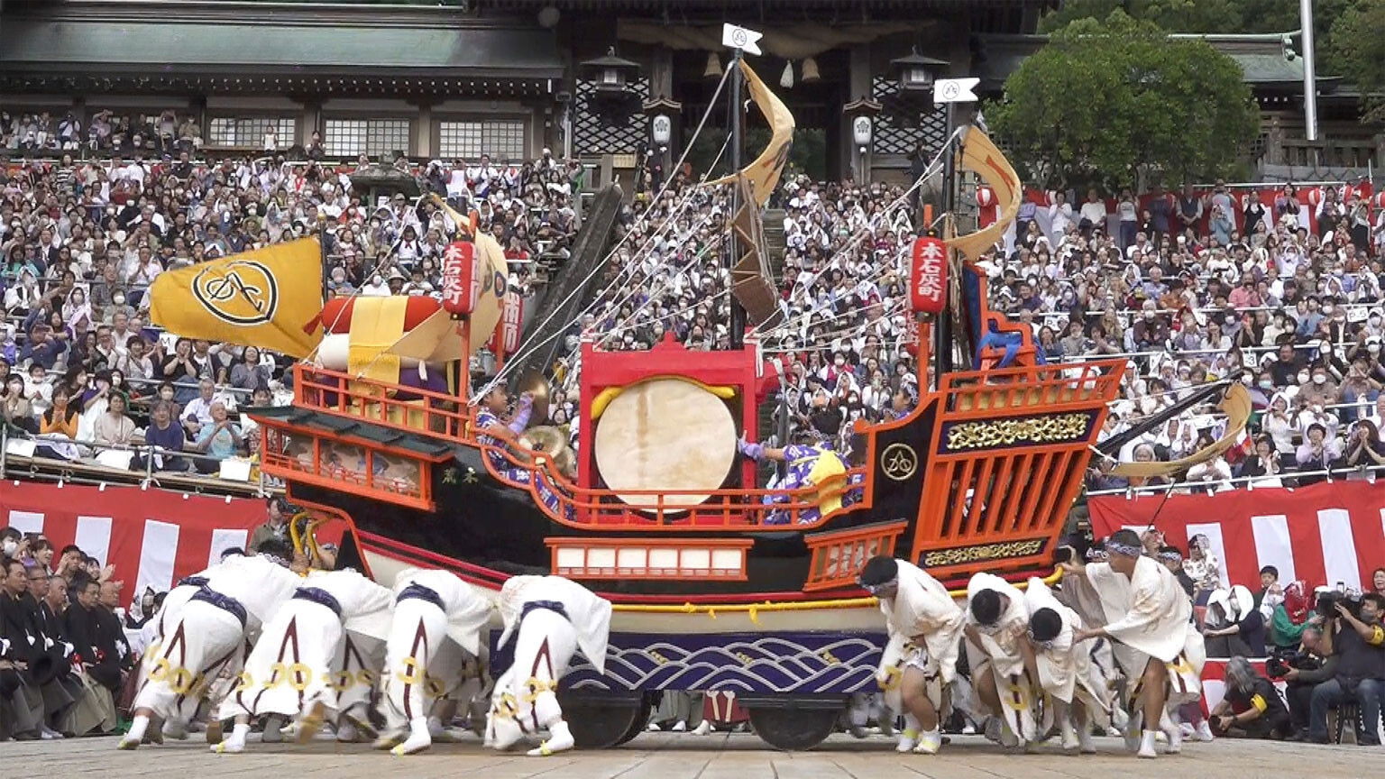 In Nagasaki, a group of men practice for a traditional performance so tough that some have to drop out with injuries. Under their motto of "Smile," will they succeed and pass on the custom?