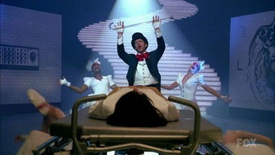 In season 7 episode 15 ("Bombshells"), there were dream sequences as part of a scene. They did a musical number for one, and "Get Happy" is that music video.