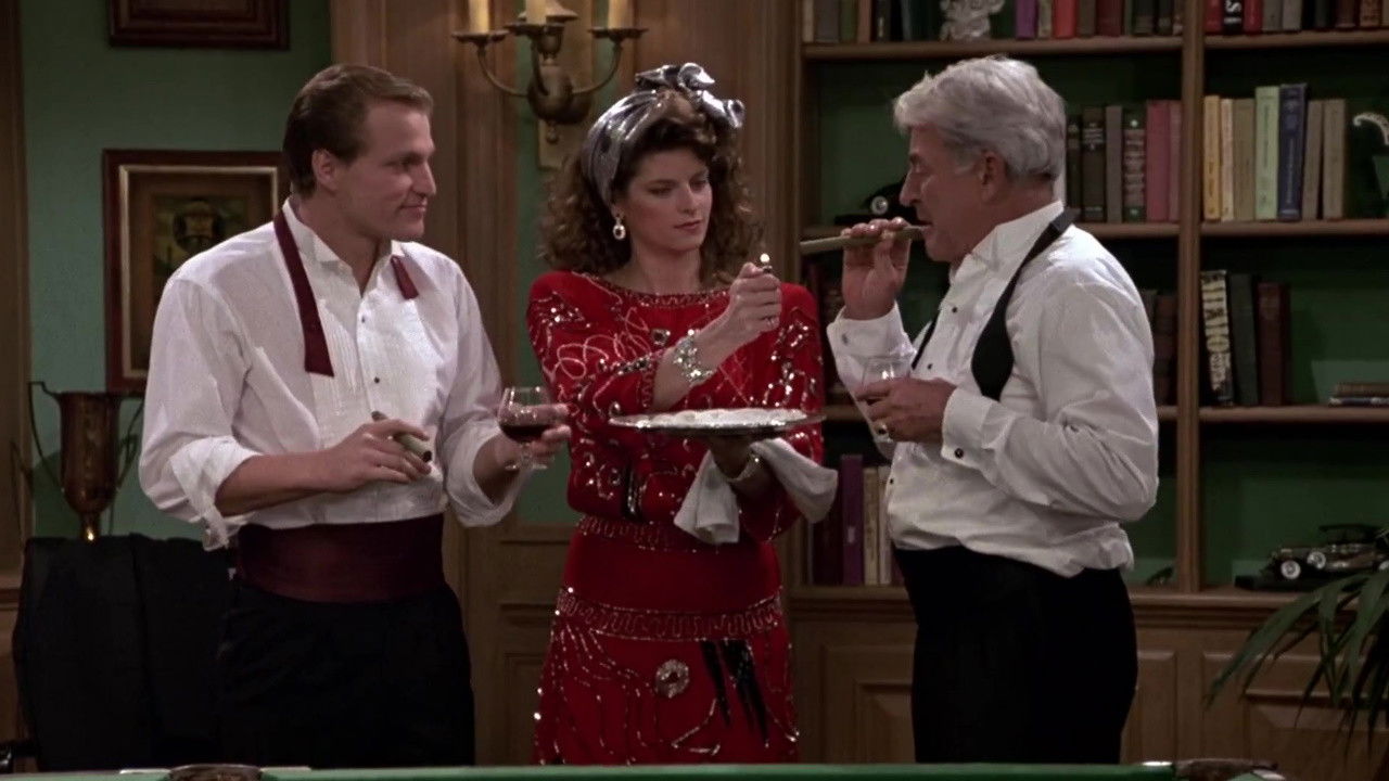 Woody takes responsibility for a vase broken by Rebecca at a company party, and winds up pals with the big boss.