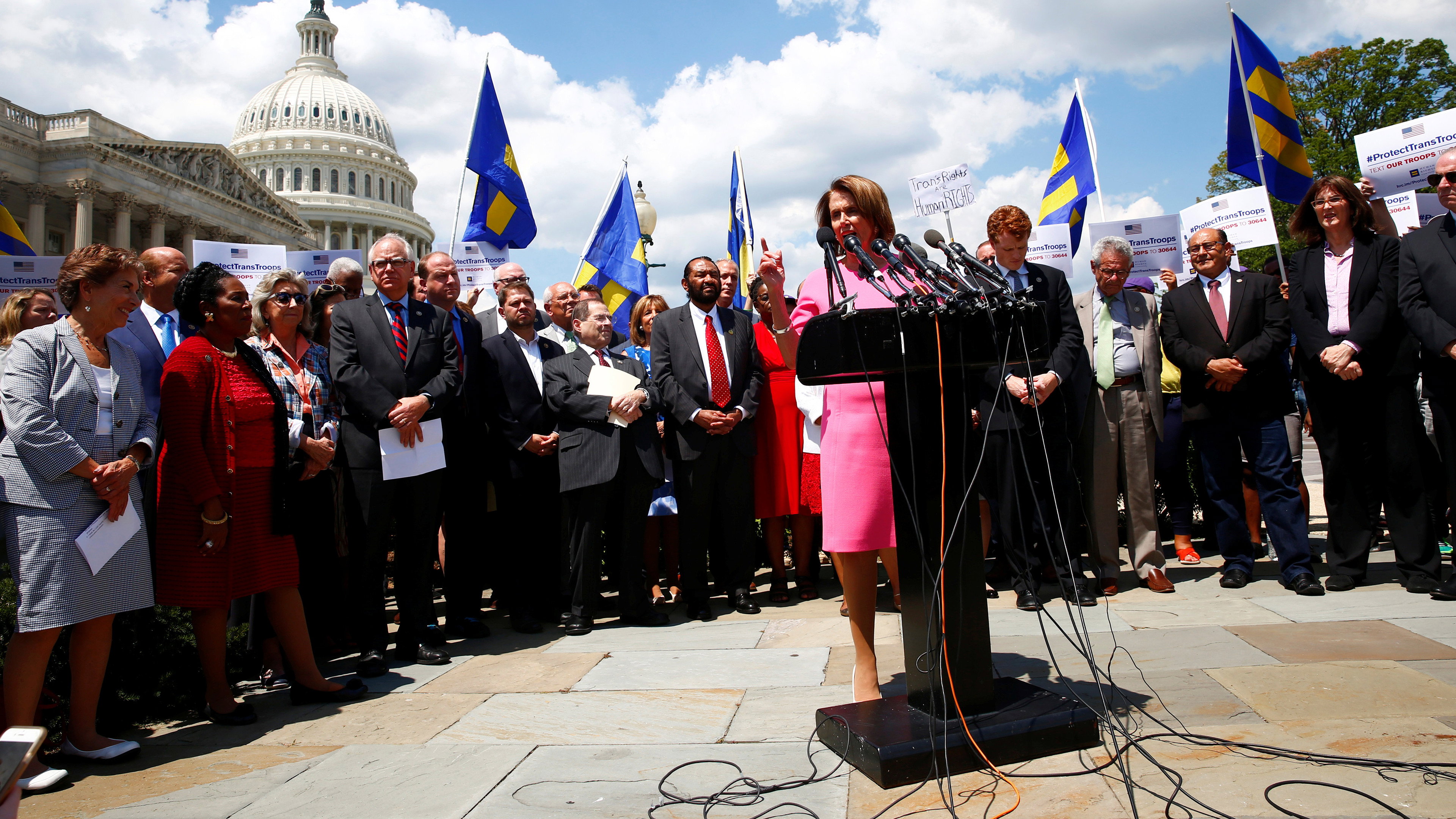 Wednesday on the NewsHour, President Trump bans transgender people from serving in the military,. Also: What's next in the health care battle, the president signals he will pull out of the Iran nuclear deal, revenge killings in Mosul, a conversation with the former government ethics director, new findings linking brain injury directly to football and Trump supporters in Portland, Oregon.
