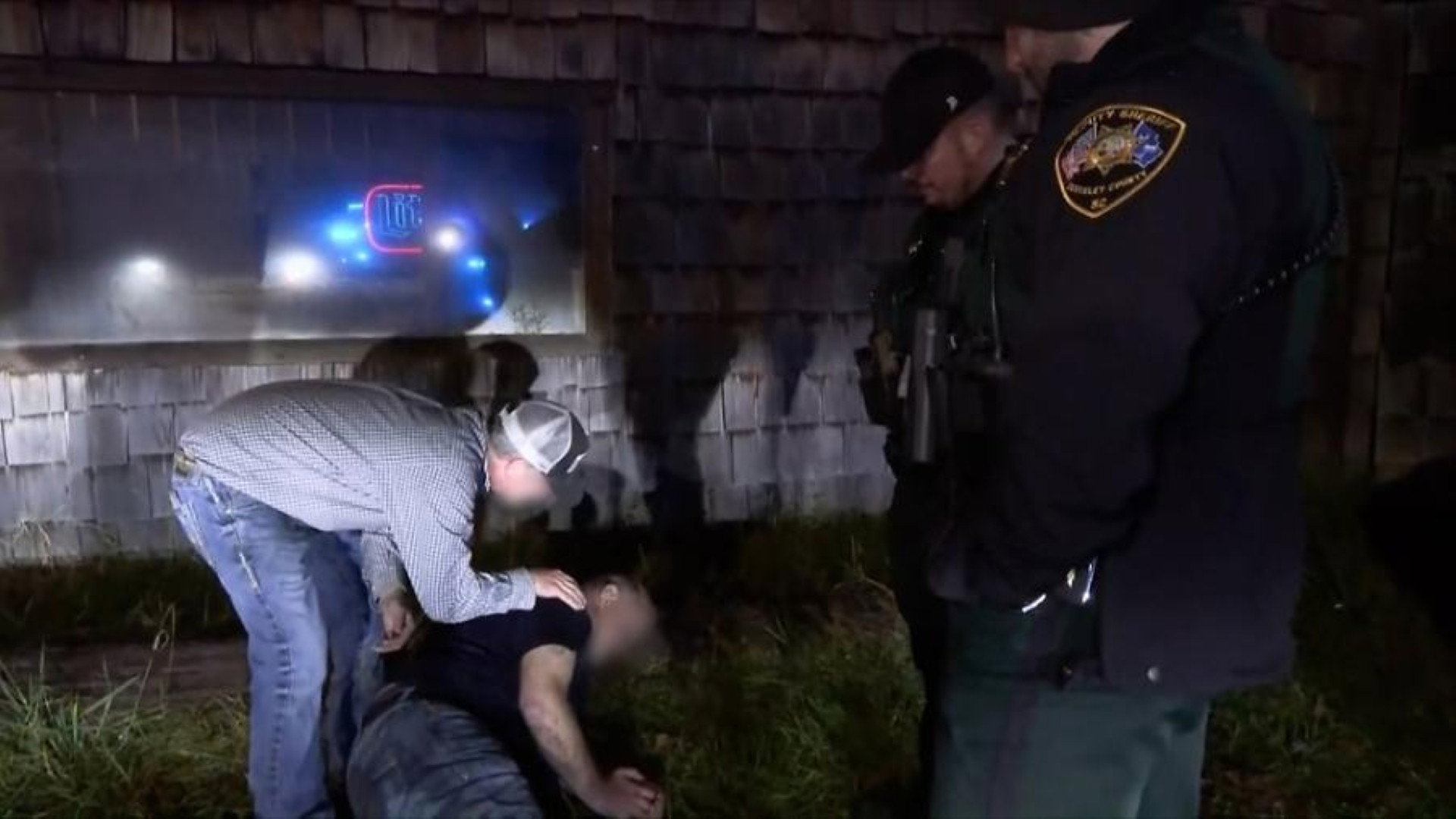 Officers track a vehicle involved in an earlier accident; officers respond to an underage party; officers investigate a car that crashed into a house; a neighbor dispute.