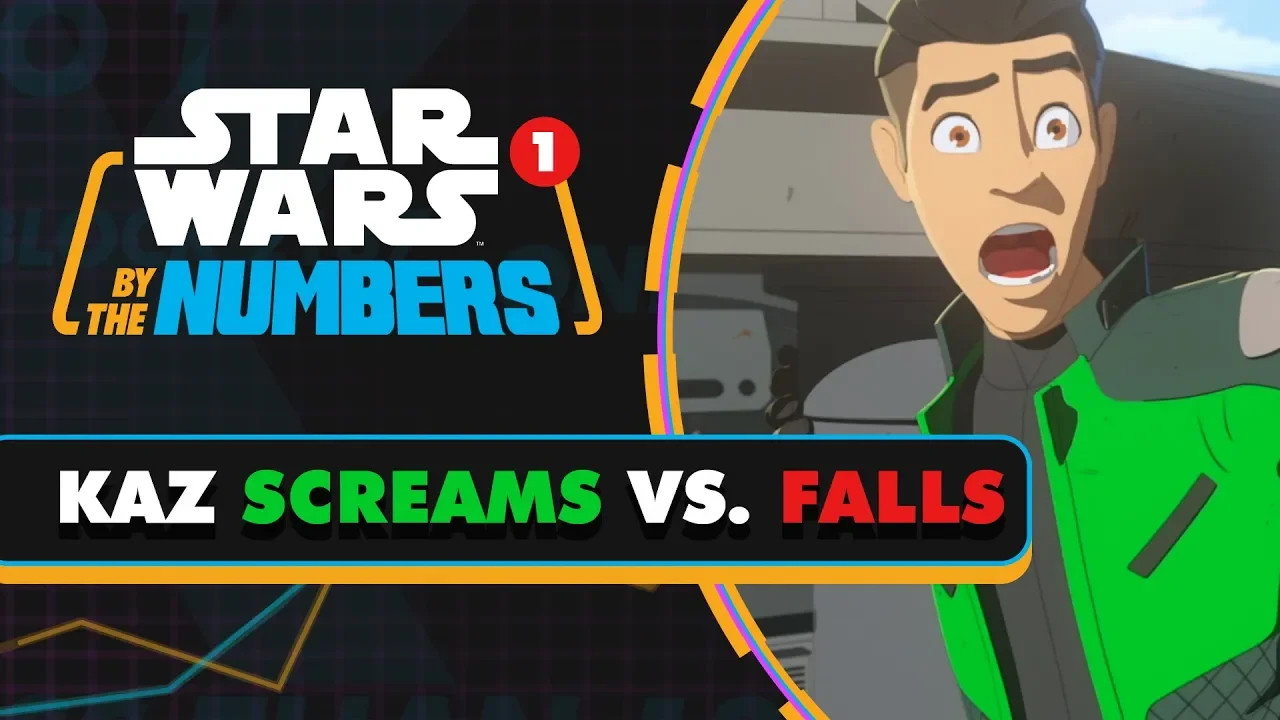 Star Wars Resistance tells the story of Kazuda “Kaz” Xiono, a young pilot recruited by the Resistance and tasked with a top-secret mission: to spy on the growing threat of the First Order. Kaz is brave and eager to help, but definitely isn't the galaxy's smoothest spy. Find out how many times Kaz falls and yells in this installment of Star Wars By the Numbers!