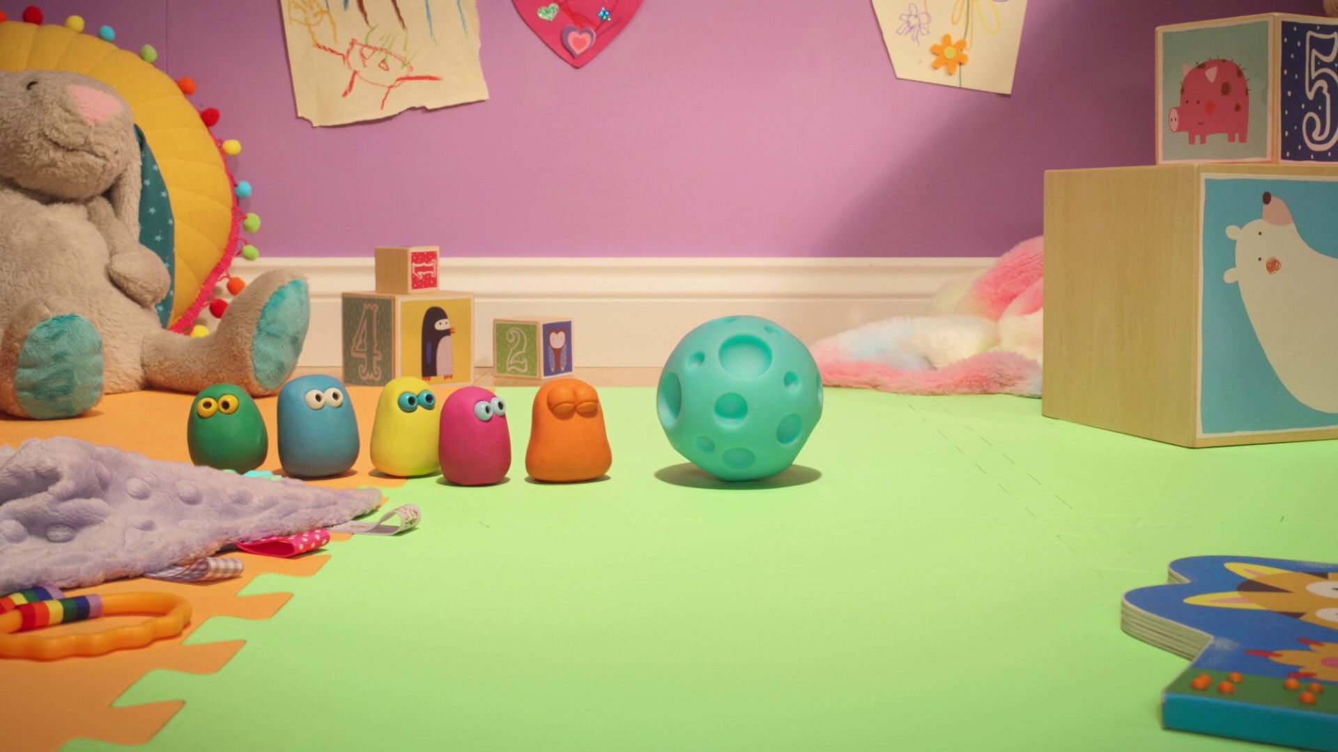 After accidentally bumping into a ball and watching it roll, the Very Small Creatures try rolling across the mats, but Orange keeps rolling in circles!