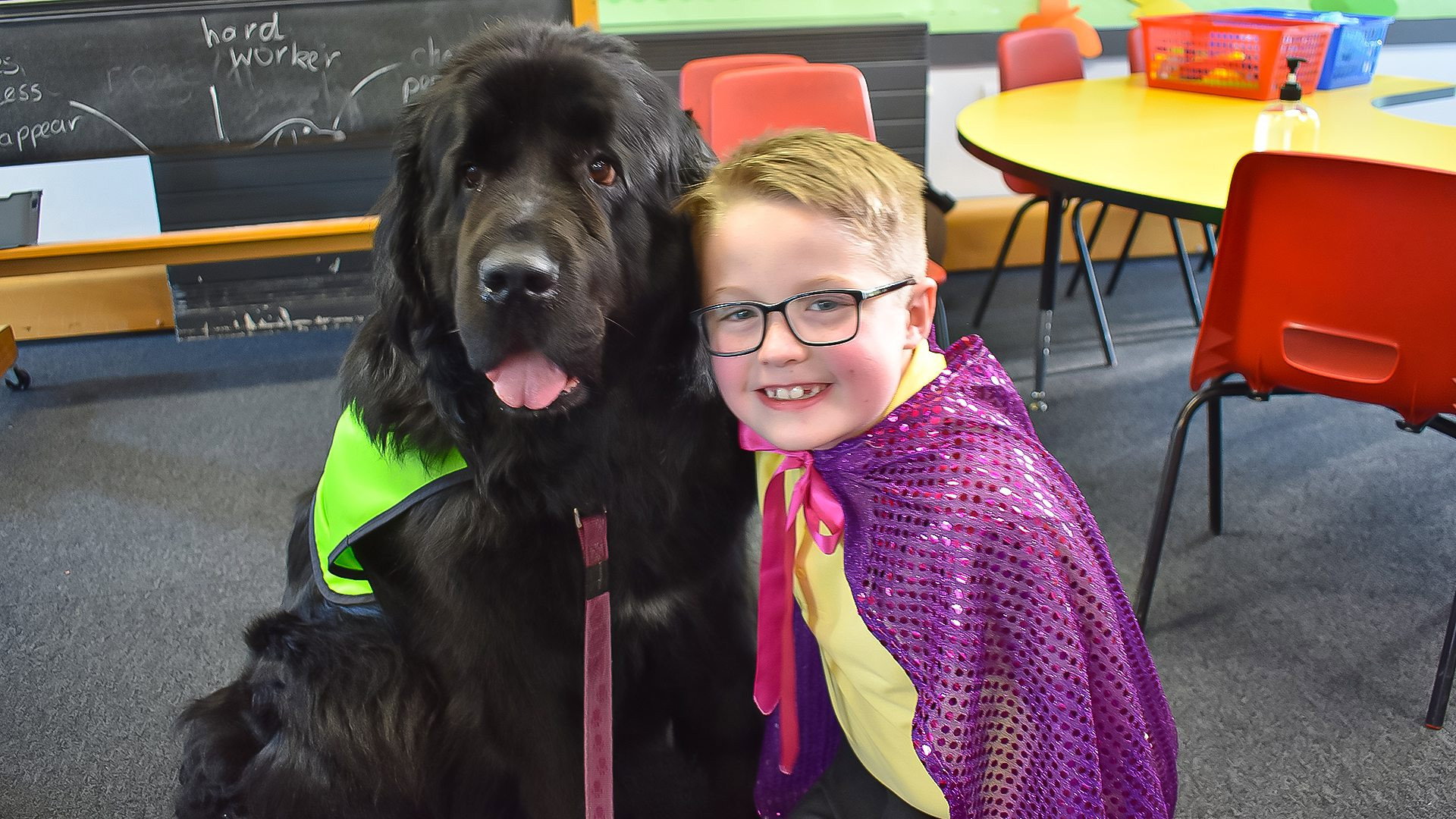 Newfoundland Sylvie is a big therapy dog with big soft cuddles who loves to help people when they’re worried. She and her owner, Katrina, visit all sorts of people every day, young and old. Sylvie and Katrina visit a school to help a little boy called Leo overcome his stage fright so he can perform his magic trick at show and tell. Leo really wants to take part, but he’s feeling shy and needs Sylvie’s help. Sylvie uses her superheart to help Leo feel brave enough to rehearse his trick with her – she can be his furry assistant! Then she pretends to be a furry table for Leo and his friends so they can make amazing decorations for the stage. And then – it’s showtime. Will Sylvie’s superheart help Leo overcome his nerves so they can perform his amazing cup-and-ball trick and take a bow-wow-wow?