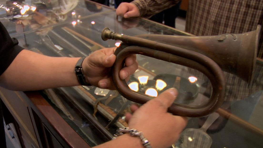 The Pawn Stars have an opportunity to buy an 1875 Remington pistol so rare that only four are believed to exist in the World. Presented to a member of Theodore Roosevelt's legendary Rough Riders, will the gang pony up the cash for this exclusive antique or will they suddenly find themselves in rough territory? Then Rick and the Old Man meet a man hoping to sell a Civil War bugle associated with General Custer's ill fated 7th Calvary. Will they charge into the valley of death to seize this deal or will Chumlee be called upon to play taps? And later, the grandson of a famous Prime Minister comes in with a clock presented to his grandfather by President Richard Nixon. Can Rick and Corey successfully campaign to secure the Presidential timepiece or will he refuse to negotiate?