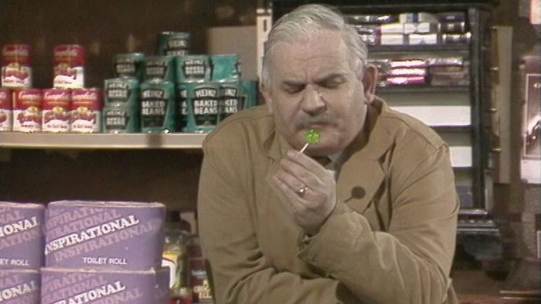 Whilst Granville moans about the shop opening at dawn, Arkwright bewails his inability to sell a load of fig biscuits and toilet rolls imprinted with biblical texts. The opportunity arises when Mavis mistakes the sepulchral voice of Granville in the cellar for a ghost advising her what to buy but unfortunately for Arkwright, he falls through the open trapdoor and breaks his leg.