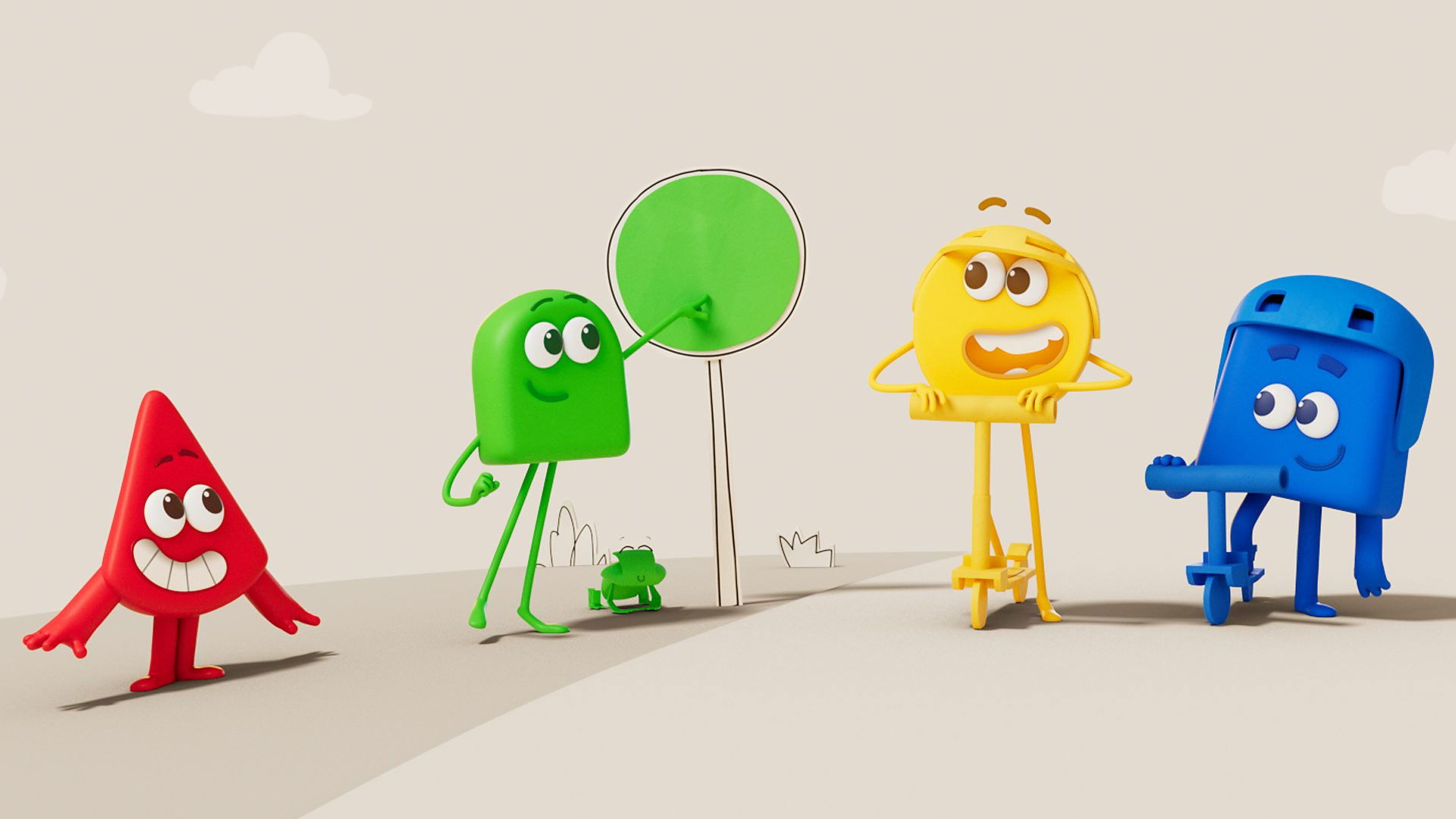 Blue and Yellow meet a new friend - Green. Discover what happens when you mix blue and yellow with the Colourblocks