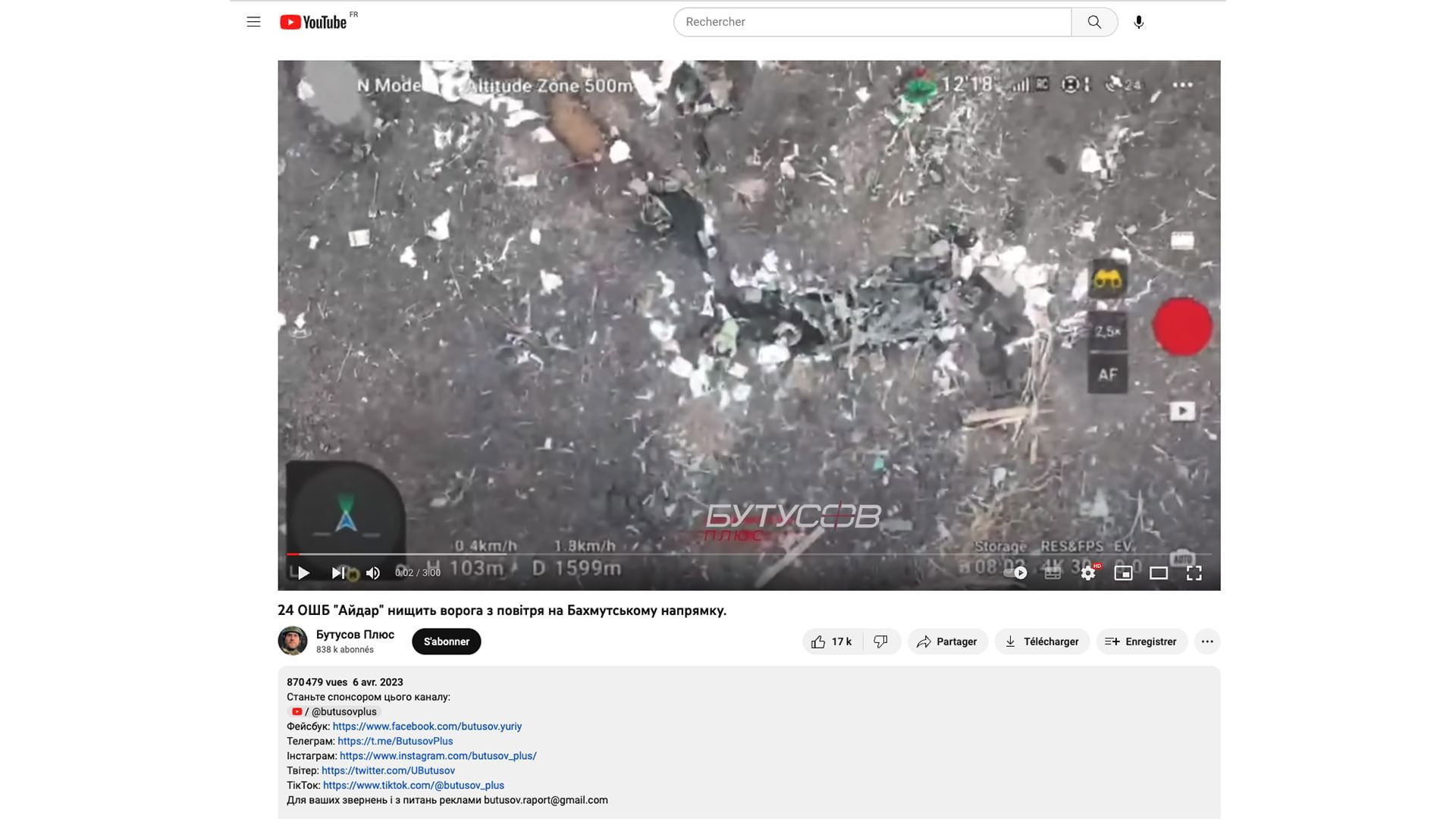 A Ukrainian drone films and bombs a Russian trench. The scene unfolds in early 2023 during the Battle of Bakhmut in eastern Ukraine. The powerful and shocking video went viral as part of a carefully orchestrated wartime communication strategy.