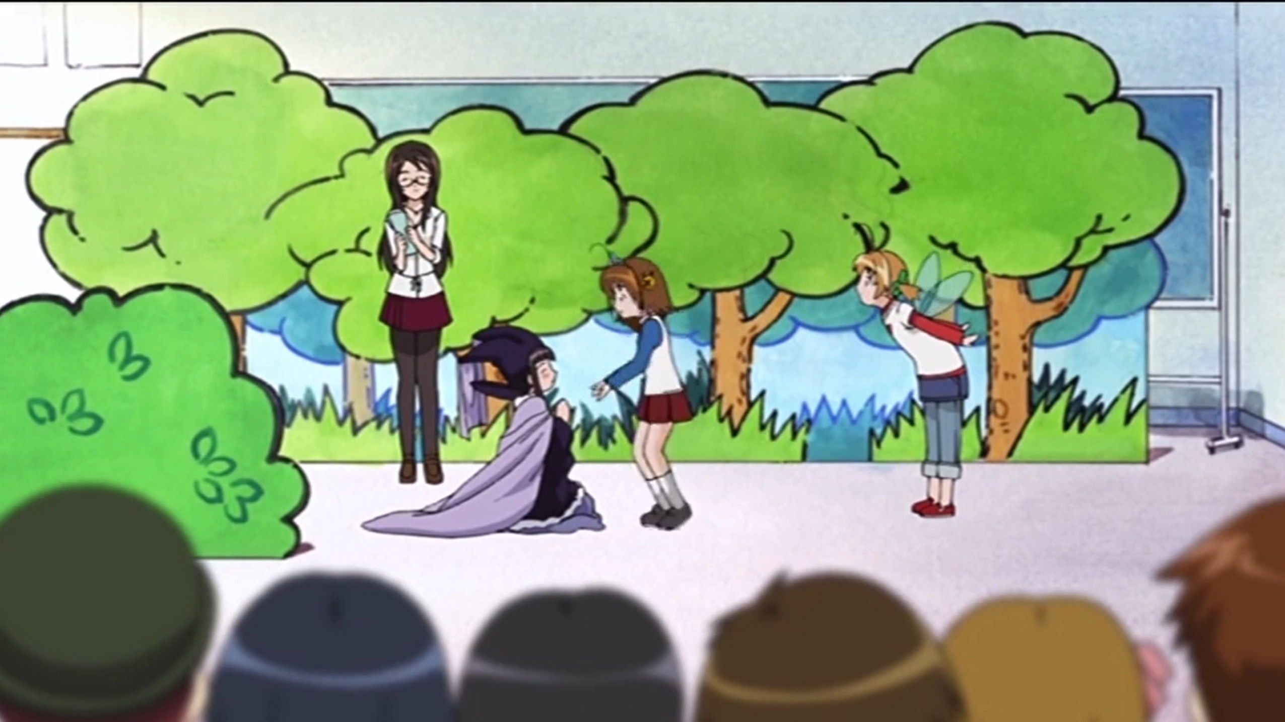 Saga's recollections continue: While the class struggled with the inevitable mishaps that arose as they prepared for the play, Sugar and her friends put on a play of their own. Meanwhile, an old friend who wouldn't miss the play for anything made his way to town just in time to see the students come together for a truly memorable performance. The end of the episode shows us a glimpse of Saga's life now that it's four years later.