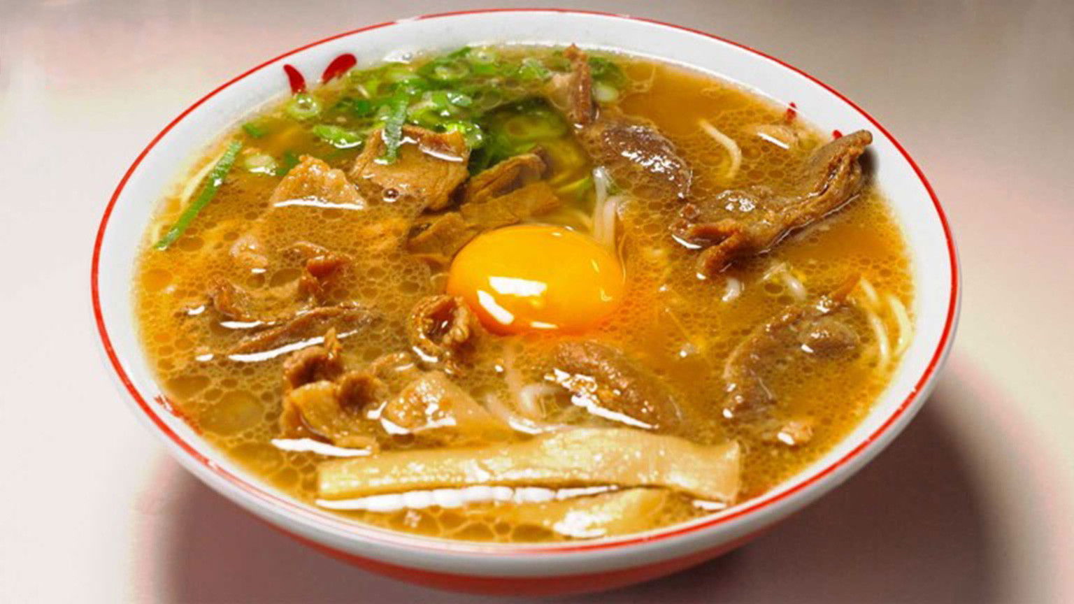 Tokushima ramen means tonkotsu! Topped with pork belly, and, of all things, raw egg—enjoy a one-of-a-kind bowl of ramen!