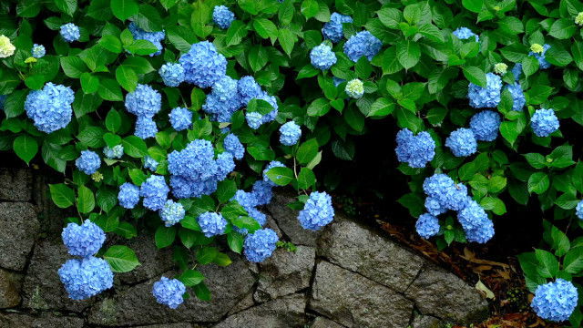 Chokyuji Temple in Ikoma City is famous for hydrangea. At the beginning of the rainy season, hydrangea fills the temple precincts with flowers of various shades such as red, white and blue. Raindrops fall on the flowers and the Buddhist statues. Moss covering those stone faces has a beautiful matte green color. What have the motionless devas thought for such a long, long time while the moss was growing over them? Instead, have they thought nothing? They show gentle expressions all along.