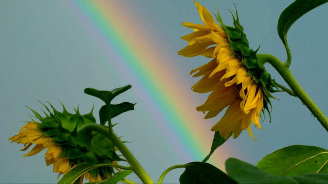 At the Beginning of Autumn (Risshuu), the hot and sunny days would continue for a while yet. It is a sunflower field in Katsuragi City, Nara Prefecture, filled with gorgeous flowers under the scorching sun. We can see the signs of autumn inside of blooming sunflowers. A sudden shower passed. And in the panoramic view of Yamato Sanzan, the 3 mountains of Yamato, a rainbow appears. The sound is played on "Hyakunen (100-year-old) Piano" in the dining hall of Nara Hotel.