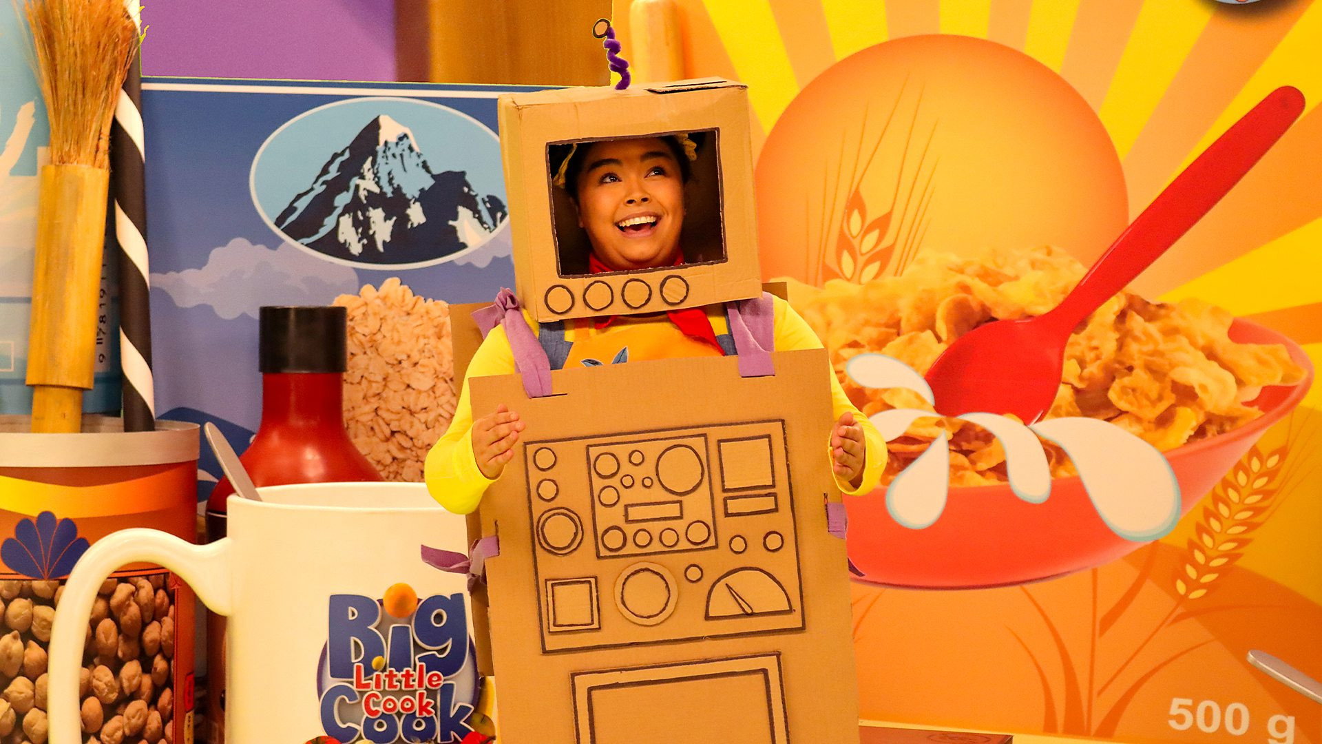 Jen starts a kitchen disco in the cafe while they bake cakes, but the radio runs out of batteries. Meanwhile, they cook a delicious robot fridge cake for Ruby Robot.