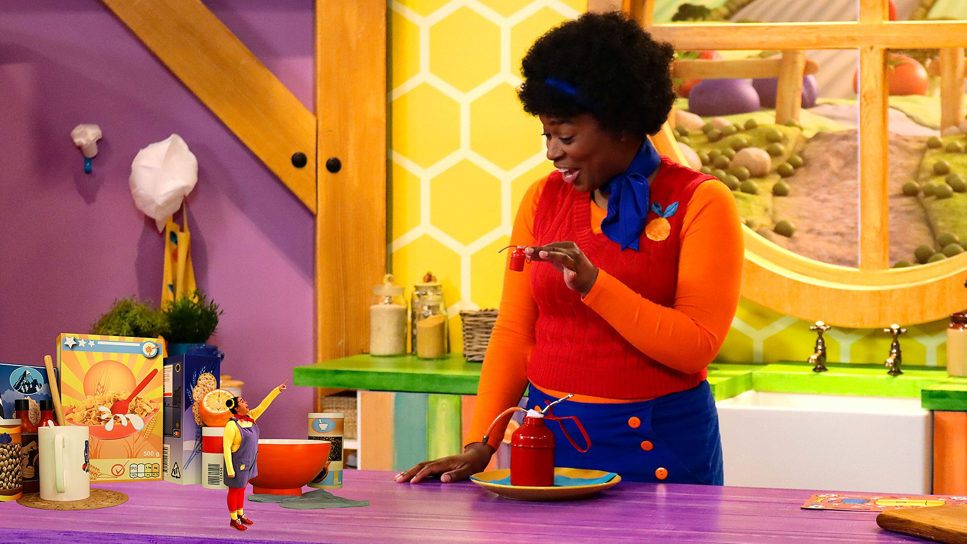 The cafe is very noisy because all of the cupboards are creaking and Small's scooter is squeaking. Today’s recipe is crispy tools for Maisie the Mechanic, who may be able to help with the noise