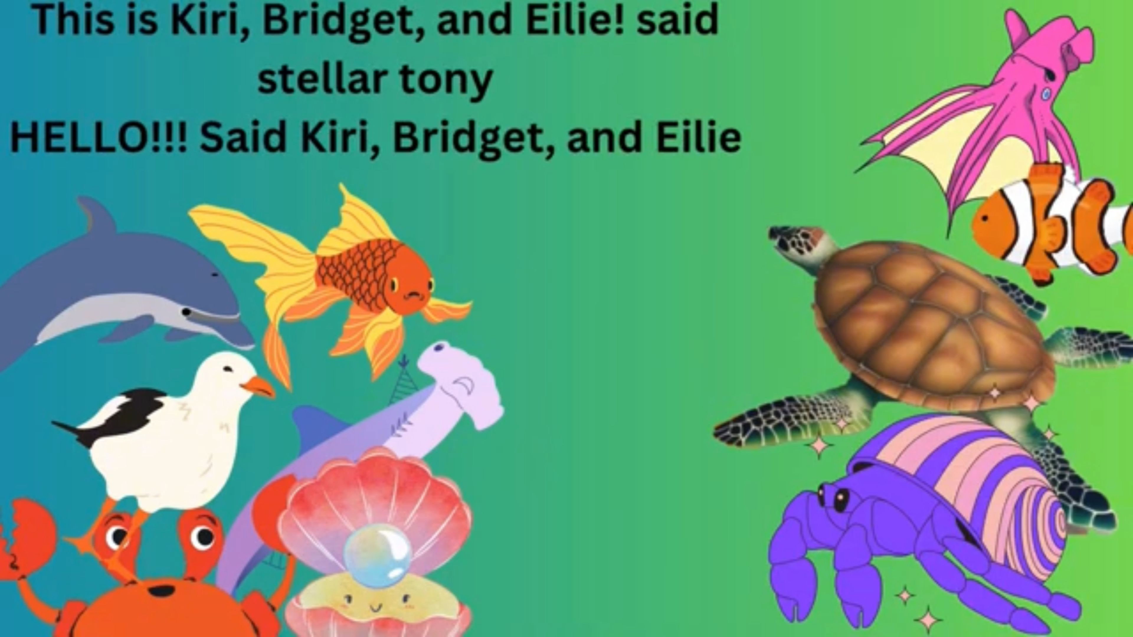 Stellar tony & friends meet Kiri, Eilie, and Bridget. Eilie, Kiri, and Bridget Save stellar tony from Shark and Scott.