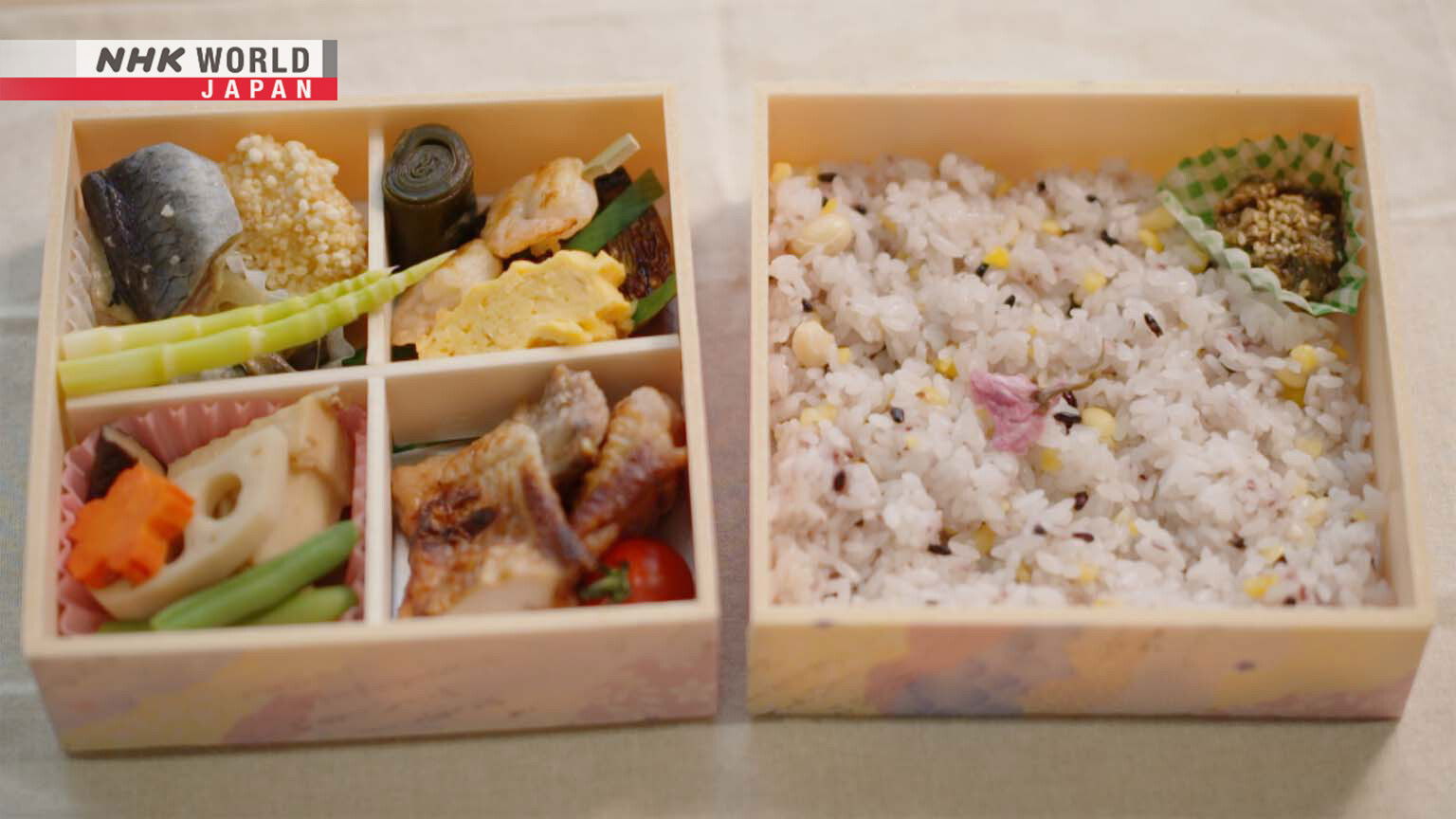 In April, as cherry blossoms bloom in Aomori, the Sakura Bento goes on sale along the Tsugaru Railway, filled with spring flavors like local scallops, tender kombu, and miso with a wild spring plant.
