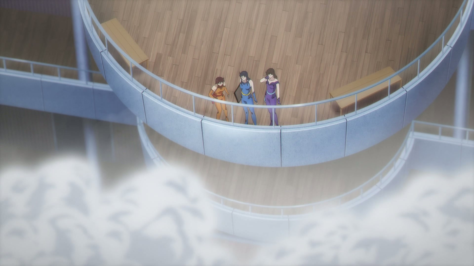 The Cat's Eye sisters Hitomi, Rui, and Ai outwit Detective Toshio to steal the "Roman Woman."