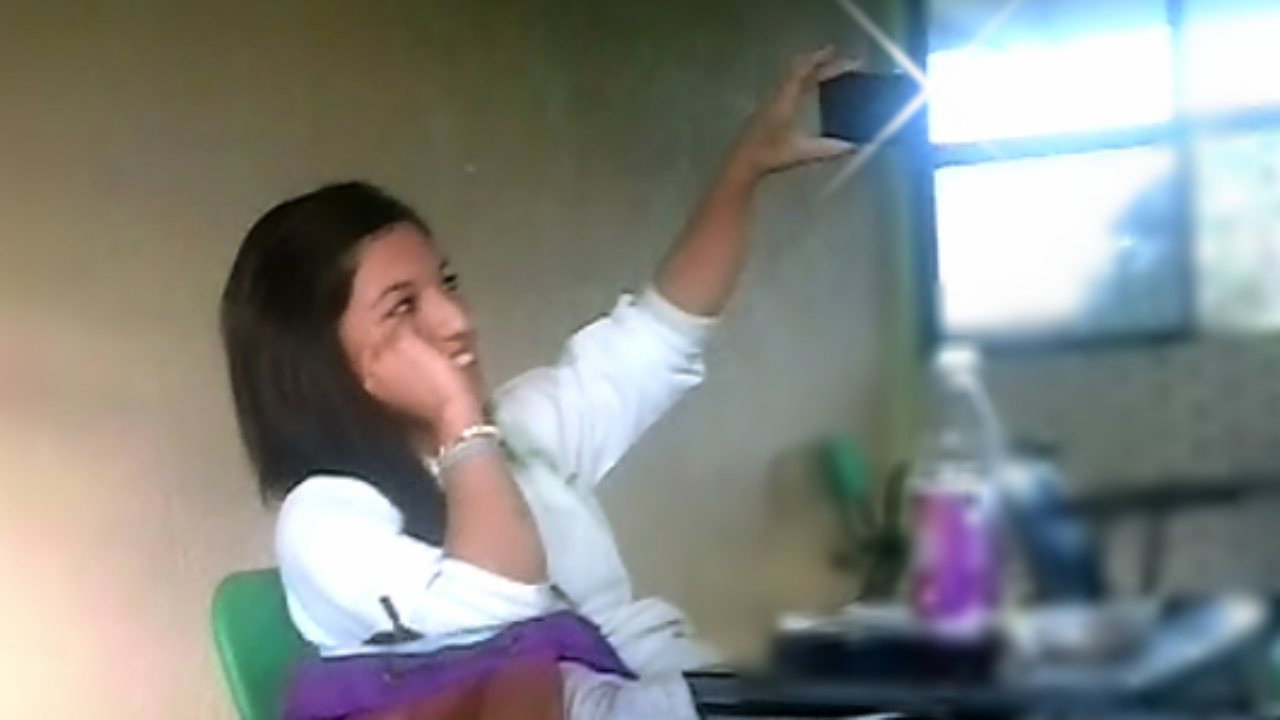 In reality, she's just changing the chip on a phone.