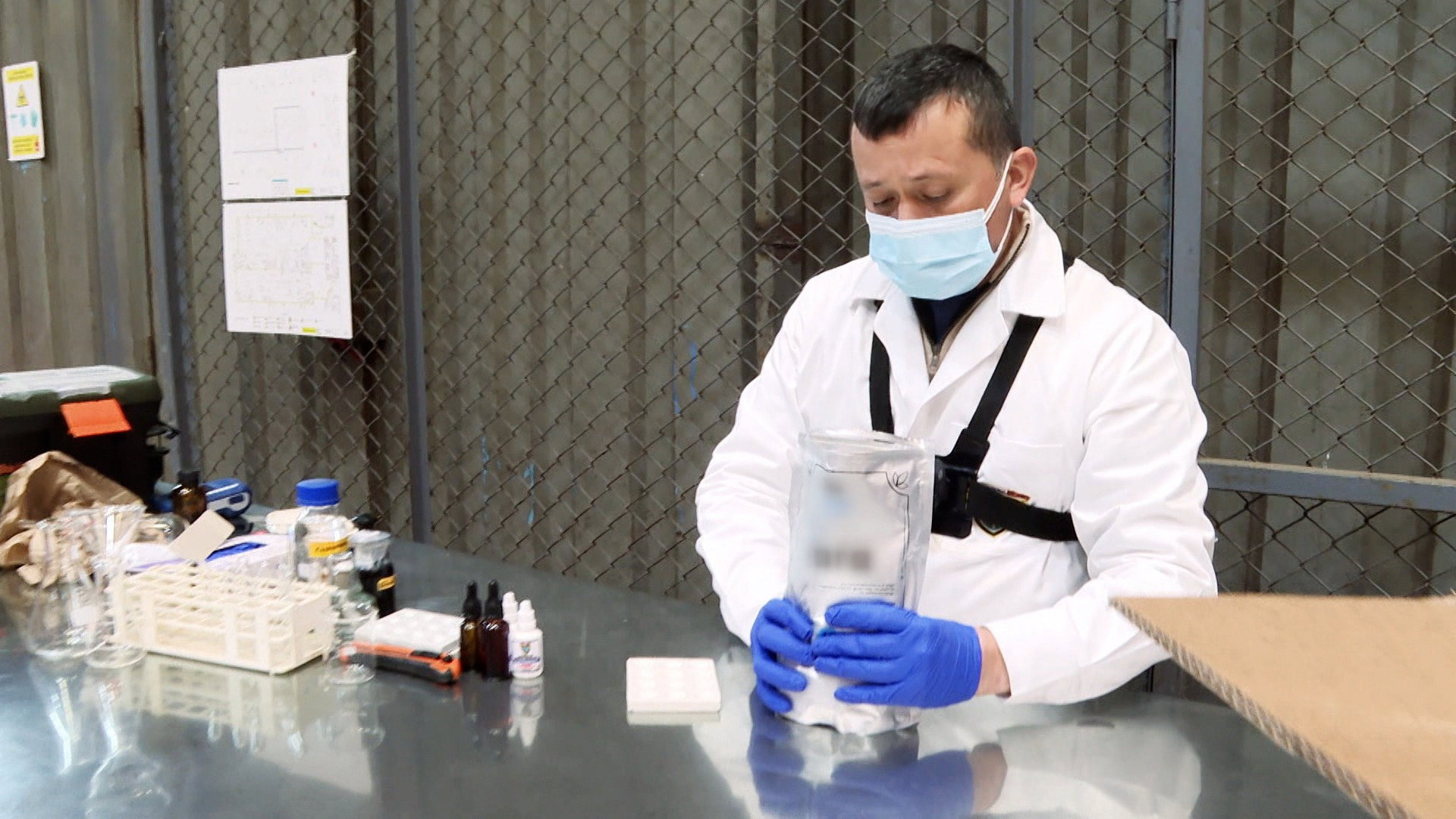 A young woman sets off alarms while going through a body scan at the Colombian airport.