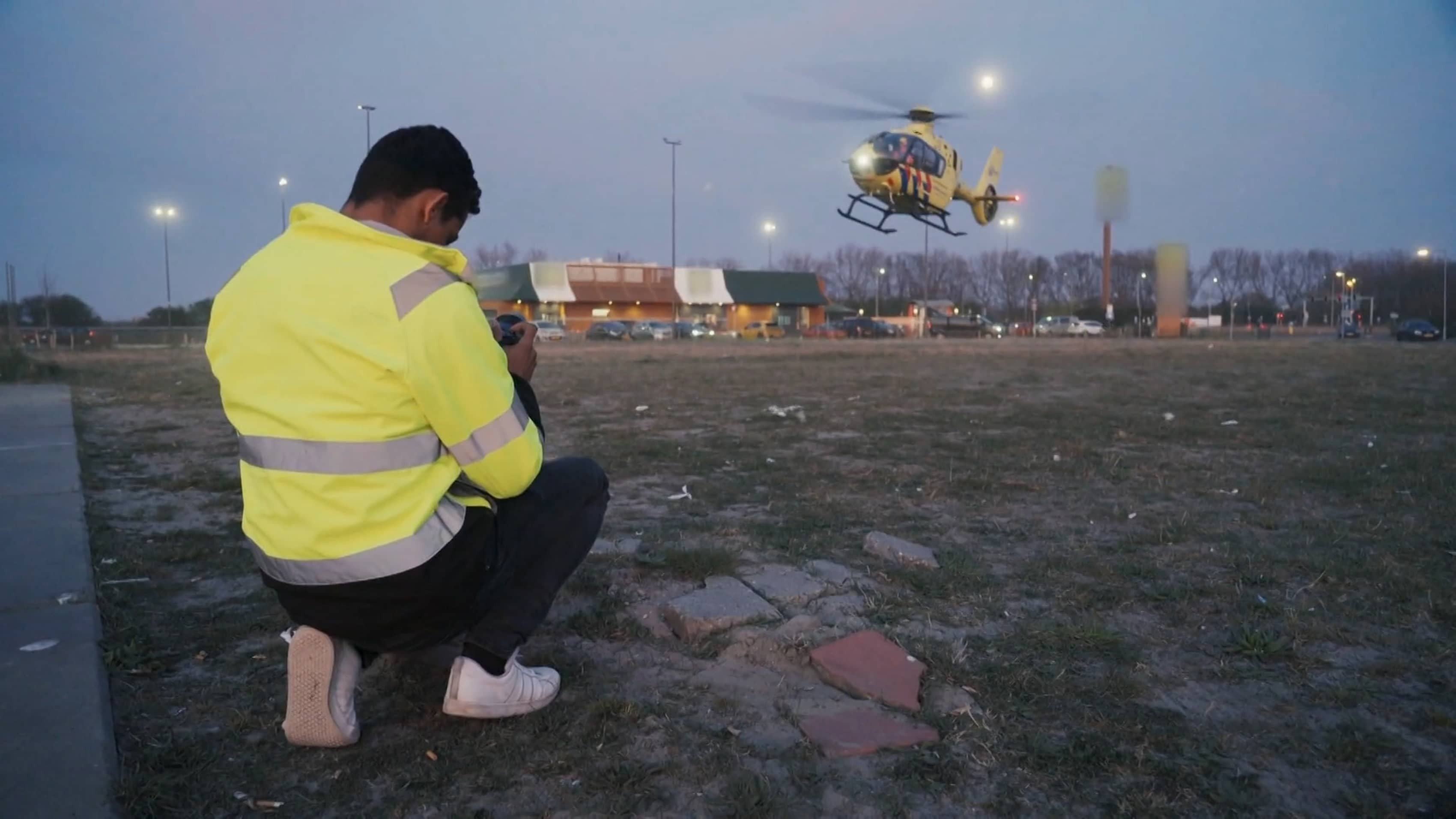 Marcelino goes on a search for an armed person, with police and surveillance. Meanwhile, Olav spots a police helicopter from the side of the road following a vehicle on the highway. Marcelino is at the scene of a crash with injuries, two ambulances, and a trauma helicopter. And while officers in bulletproof vests give chase, Olav also captures a supermarket robbery on camera.
