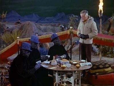 As they are rehearsing a play, Dr Smith, Will, Penny and the Robot encounter a creature who appears to be suffocating. Dr Smith refuses to help out of fear but Penny helps him. The alien puts himself in human form so that he may breathe the atmosphere. He says he is Mr Arcon. Penny takes him back to the Jupiter II to rest. Later he gives Penny a gift which he says she must guard with her life. He tells her that as long as she wears the belt, she will be safe. He disappears, and it is not long before a group of aliens turn up, looking for the belt. They inflict immense cold on the planet as a way of trying to get the belt, but Penny refuses despite pleas from Dr Smith. Dr Smith makes a copy of the Belt and tries to give the fake to Aliens. They are angry, but still want his help. They promise to return him to Earth should he get the belt. Dr Smith and Penny go through the Alien's machine, where they have created a world from the Dr Smith's memory, which will trick them in to
