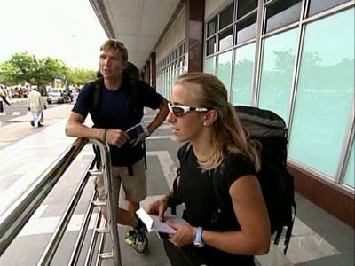 The teams take off from their Pit Stop at the Chettinad House in Chennai India and receive a mobile-phone clue instructing them to fly 2,400 miles to Kuwait City in Kuwait. Once there, the teams find the mystery location, the Kuwait Towers and take numbers to face a Roadblock when the towers officially open. The Roadblock requires one member of each team to climb 610 feet above the ground and retrieve pieces to complete a puzzle. One team opts for the Fast Forward to avoid elimination. Once the remaining teams complete the Roadblock, they travel three miles to a bead shop in a local market. There, they receive a clue with a Detour task of Manual or Automatic. Teams choosing Manual load bags of camel feed, while teams choosing Automatic steer a camel using a robotic jockey. Many teams get lost on the way to their Detour choice. Ultimately, one team is not able to find either Detour task in time and is eliminated from the race.