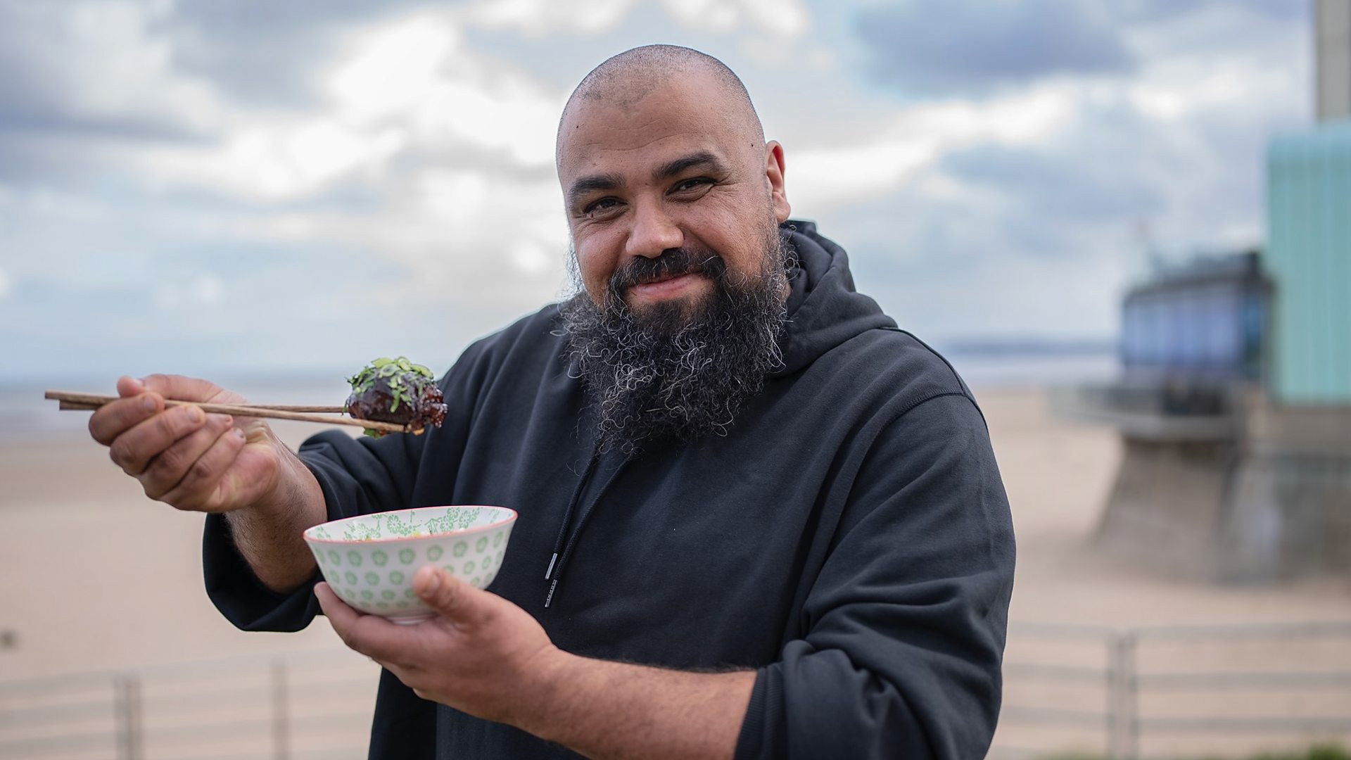 For his first ever visit to Swansea, Chris cooks a monster steak for rugby legend Alun Wyn Jones and invents a Chinese-fusion faggot dish where modern east meets traditional Welsh.