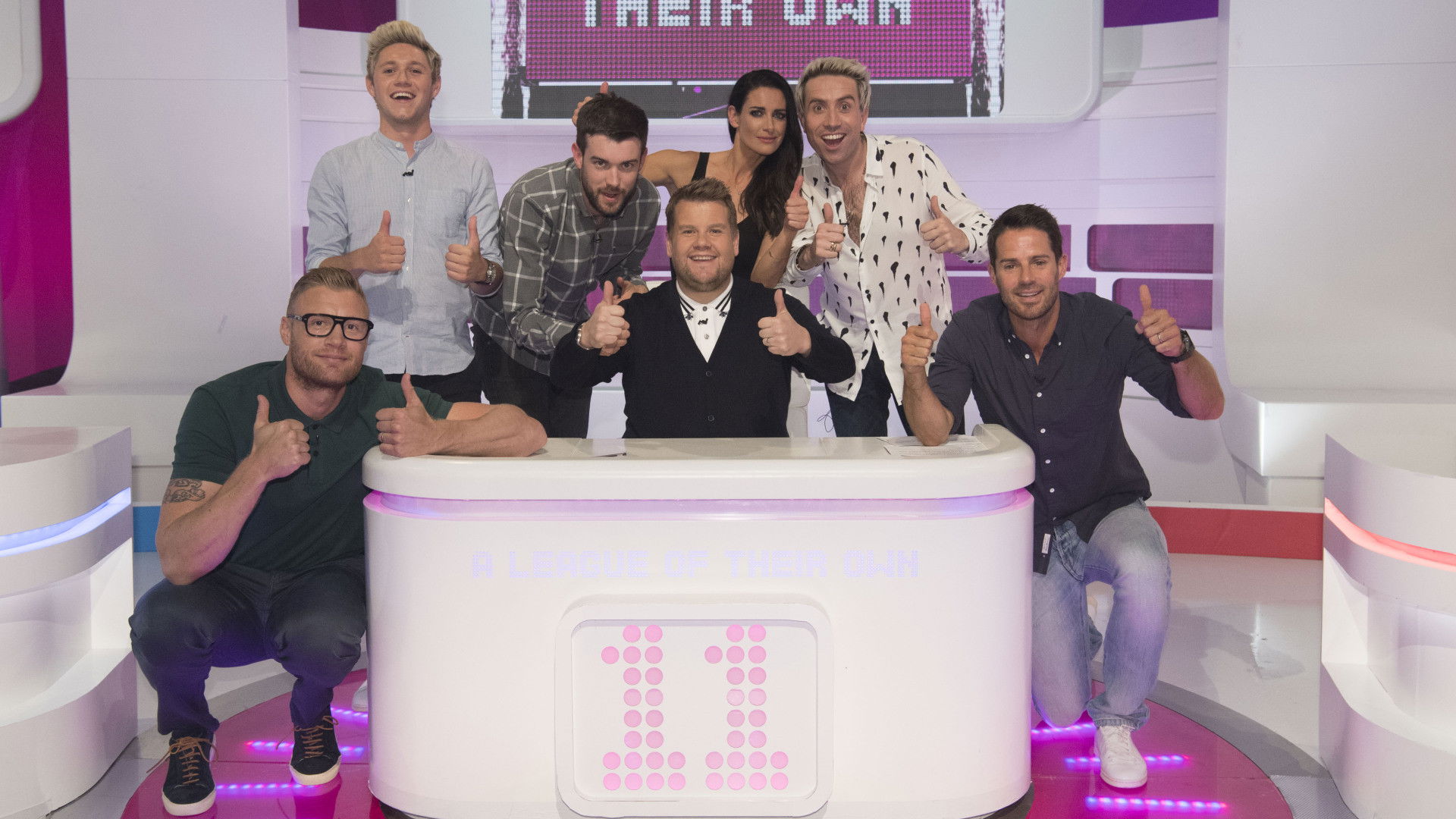 Radio 1 breakfast show host Nick Grimshaw, Niall Horan of One Direction and TV presenter Kirsty Gallacher join host James Corden and regulars Jamie Redknapp, Andrew Flintoff and Jack Whitehall on the sports-based comedy quiz.