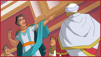 Macky urges Antonius to speak out against Marcus in the Senate, but Antonius is reluctant to openly confront Marcus, reminding Macky of the importance of doing right when he tells the story of Jesus riding into Jerusalem. Macky responds with the story of Jesus and the Moneylenders in the Temple. Later Antonius is wrongly arrested after accusations by Marcus. To give Macky and Portia encouragement, Felix and Sophia tell the story of Jesus healing a Paralysed Man.