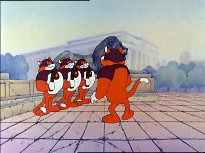 Danger Mouse and Penfold end up in the future where the world is ruled by cats who are taking orders from a descendent of Greenback.
