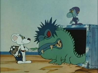 The alien J.J. Quark returns and sends a Fangboner to attack Danger Mouse.